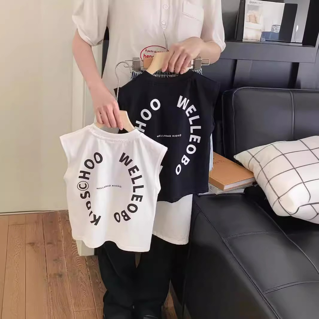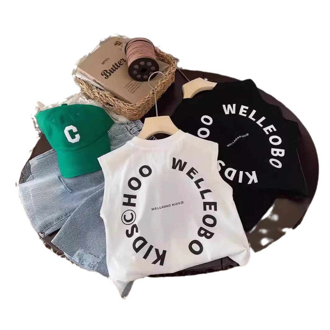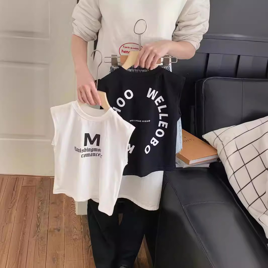 100%纯棉童装无袖背心t恤夏季新款男童简约字母印花儿童宝宝上衣
