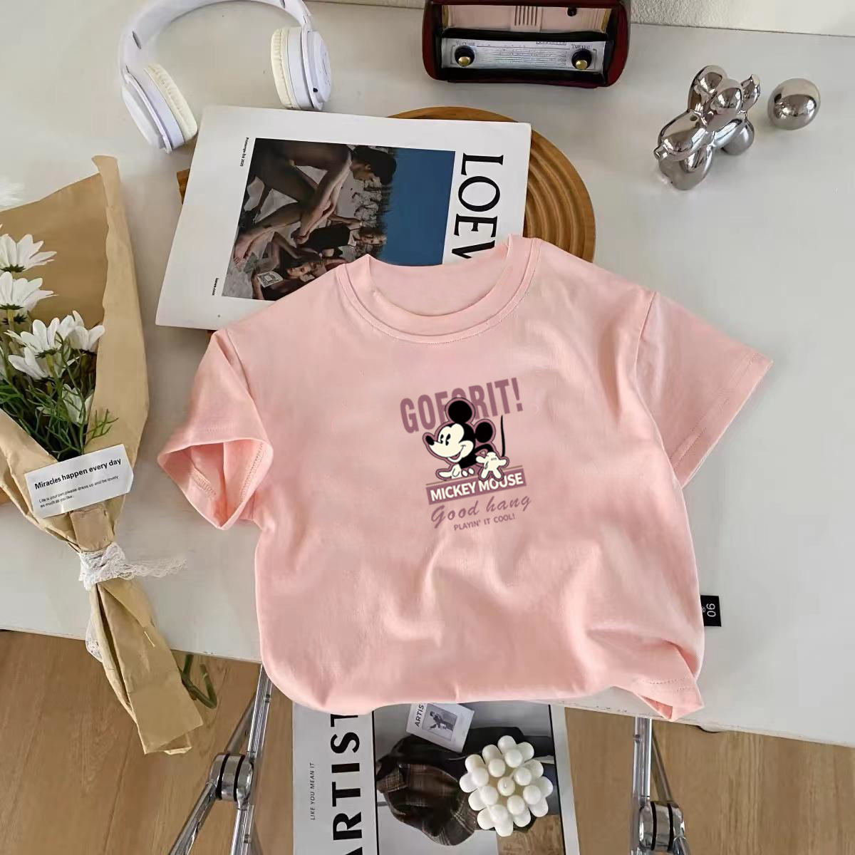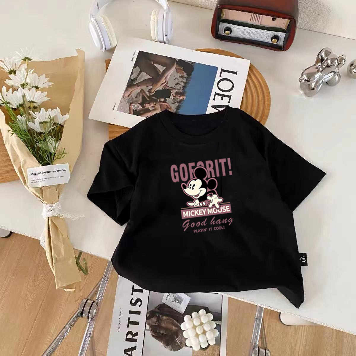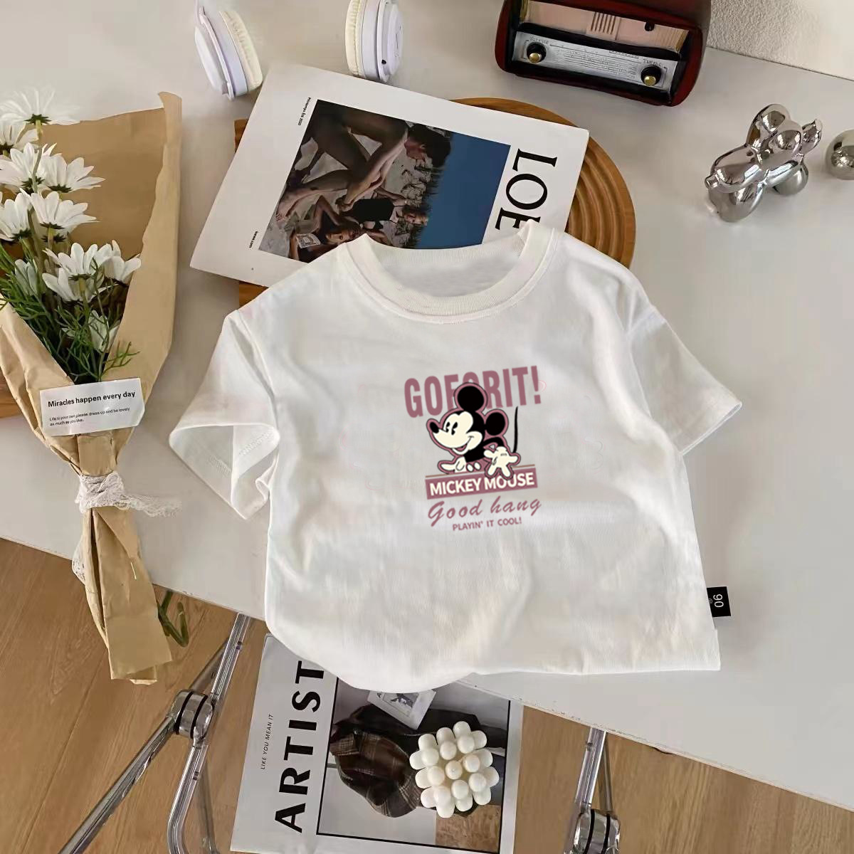 纯棉男童儿童夏季纯色短袖T恤女童中小童米奇卡通印花半袖上衣潮