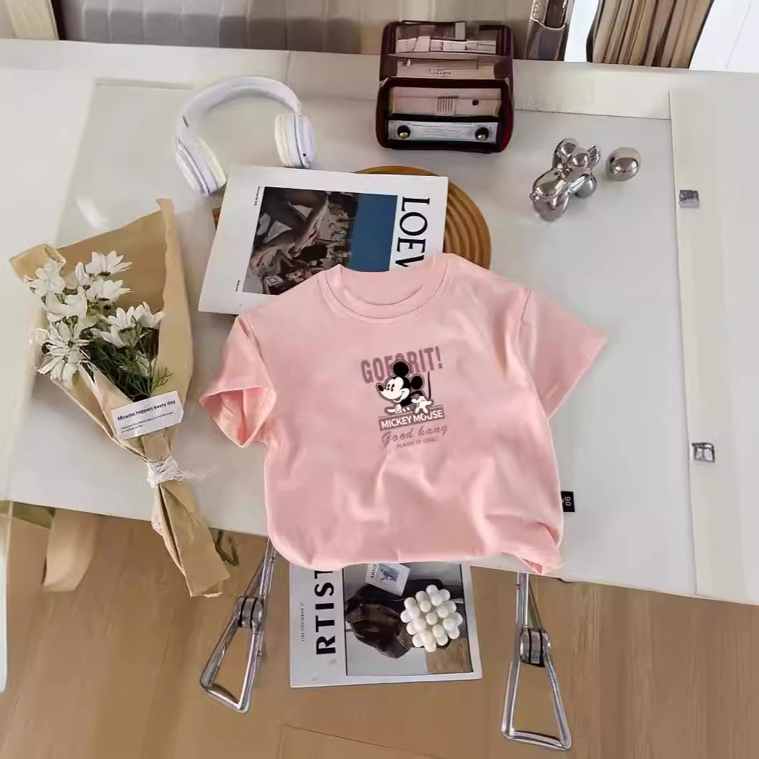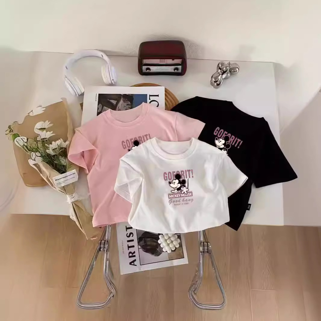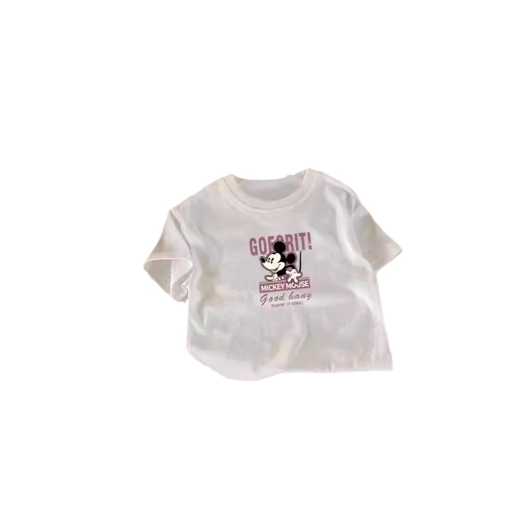 纯棉男童儿童夏季纯色短袖T恤女童中小童米奇卡通印花半袖上衣潮