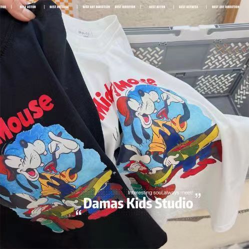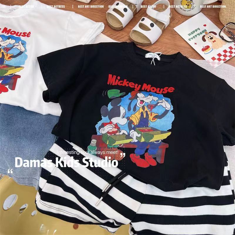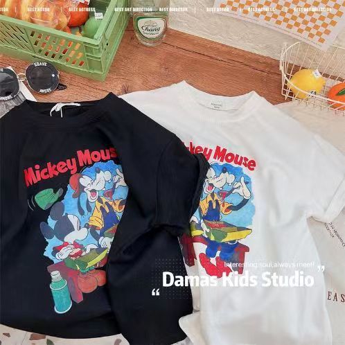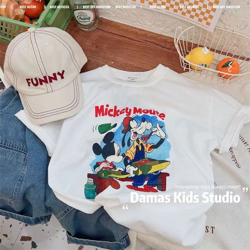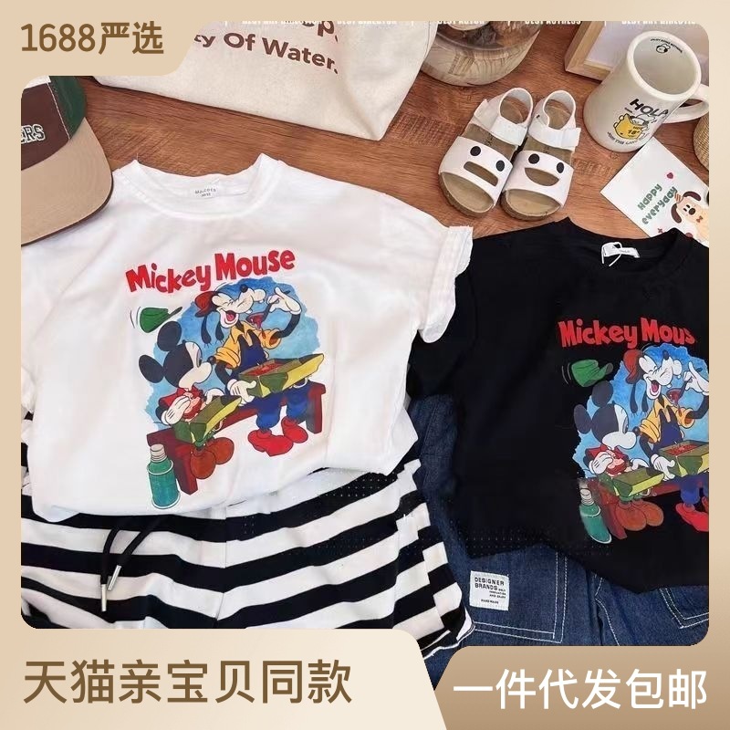 100%纯棉儿童夏款短袖T恤男女童卡通印花中小童圆领百搭半袖上衣