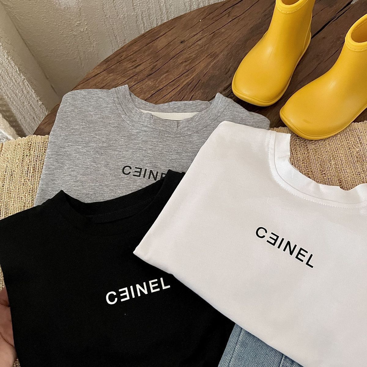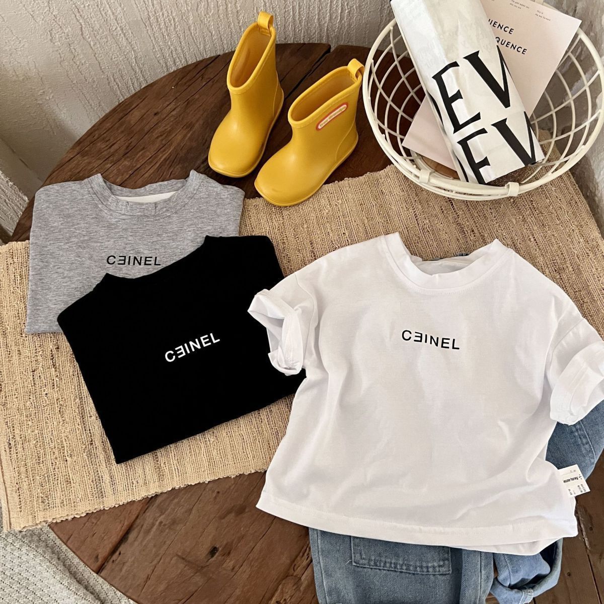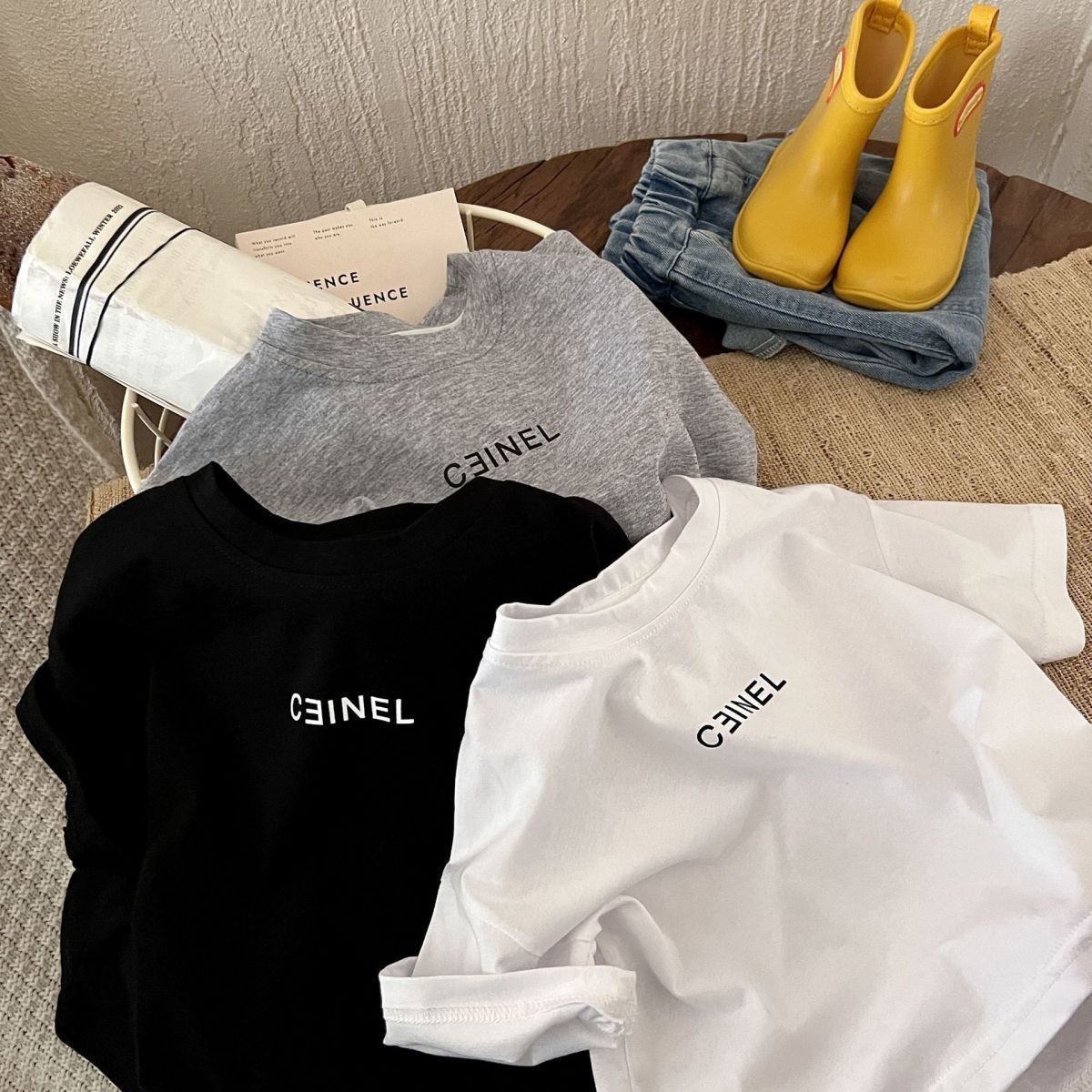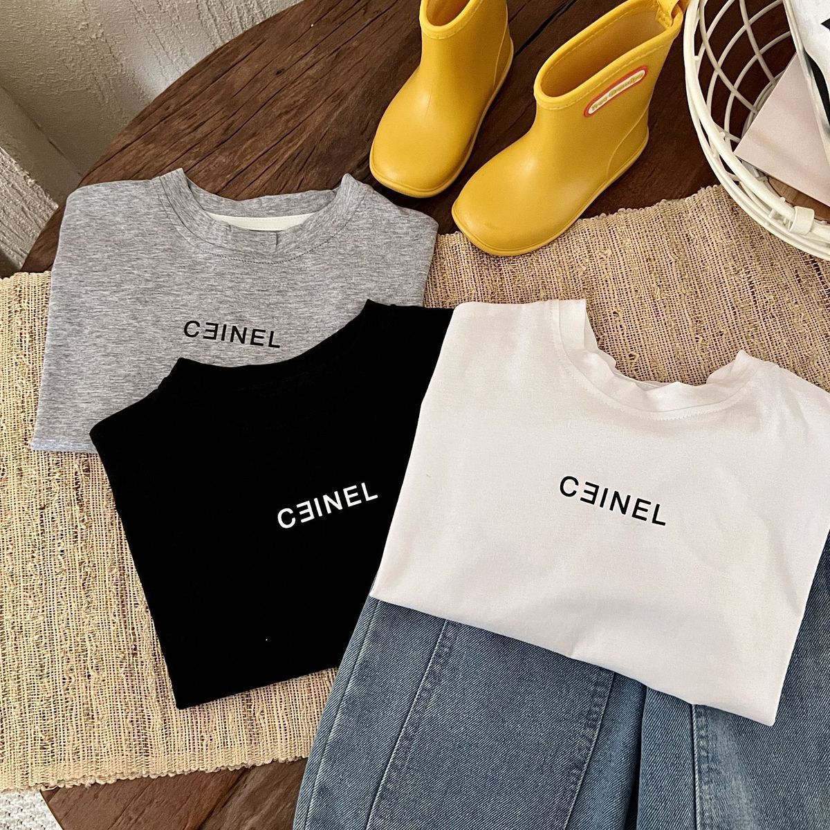 儿童纯棉短袖字母印花短袖T恤夏季中小童男女宝宝宽松圆领上衣潮