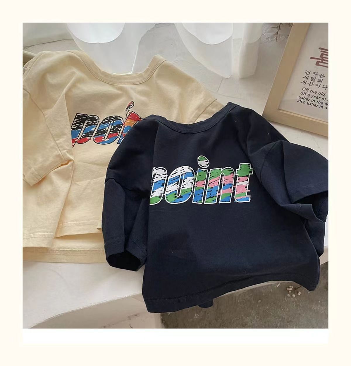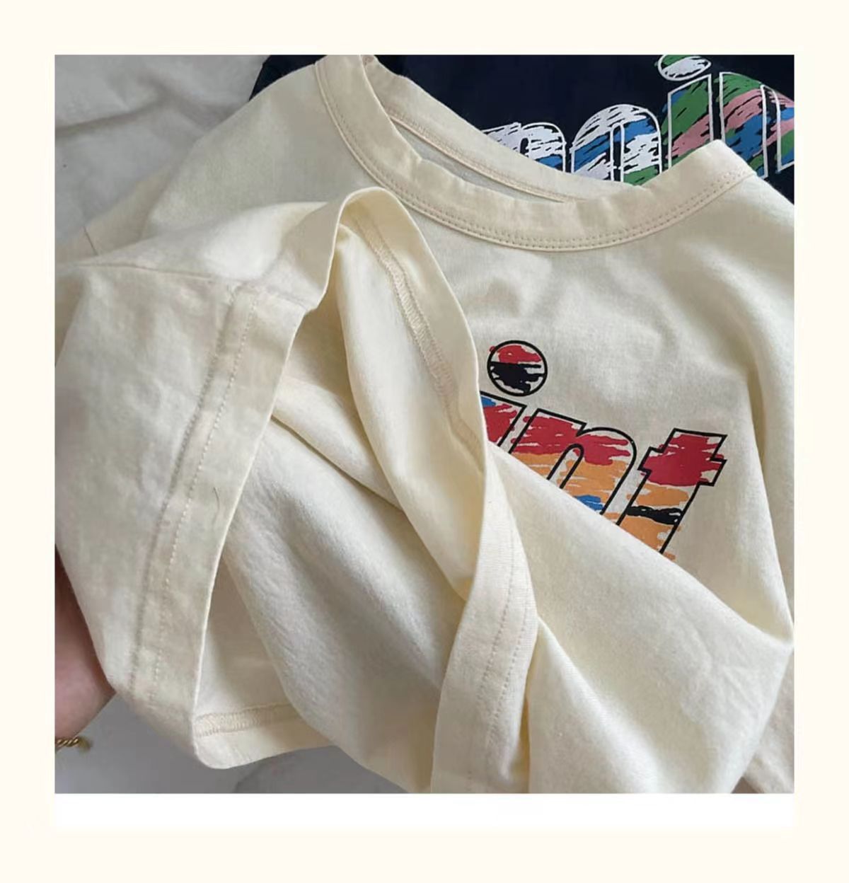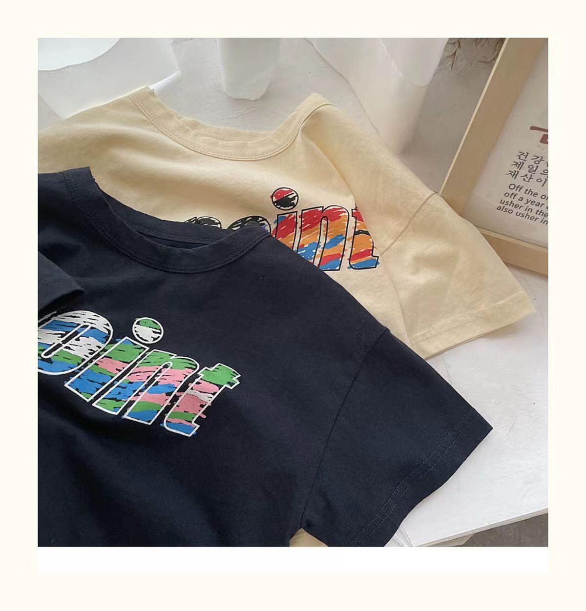 儿童纯棉短袖字母印花短袖T恤夏季中小童男女宝宝宽松圆领上衣潮