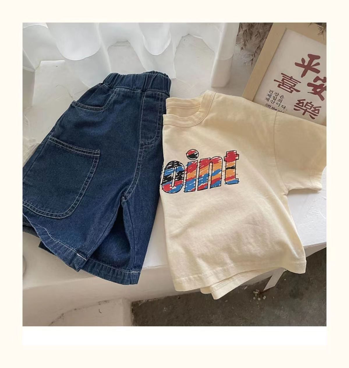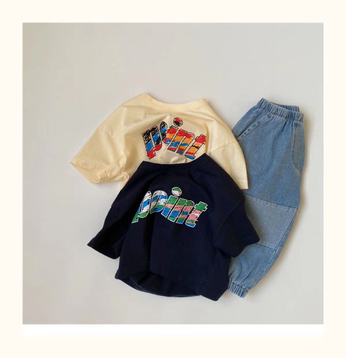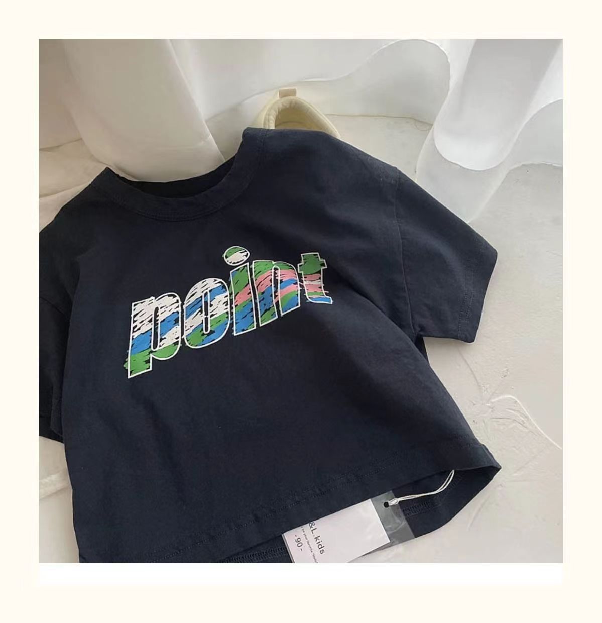 儿童纯棉短袖字母印花短袖T恤夏季中小童男女宝宝宽松圆领上衣潮