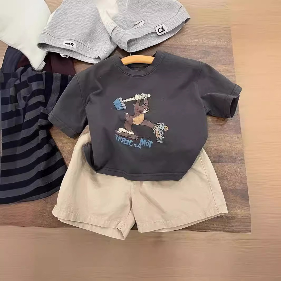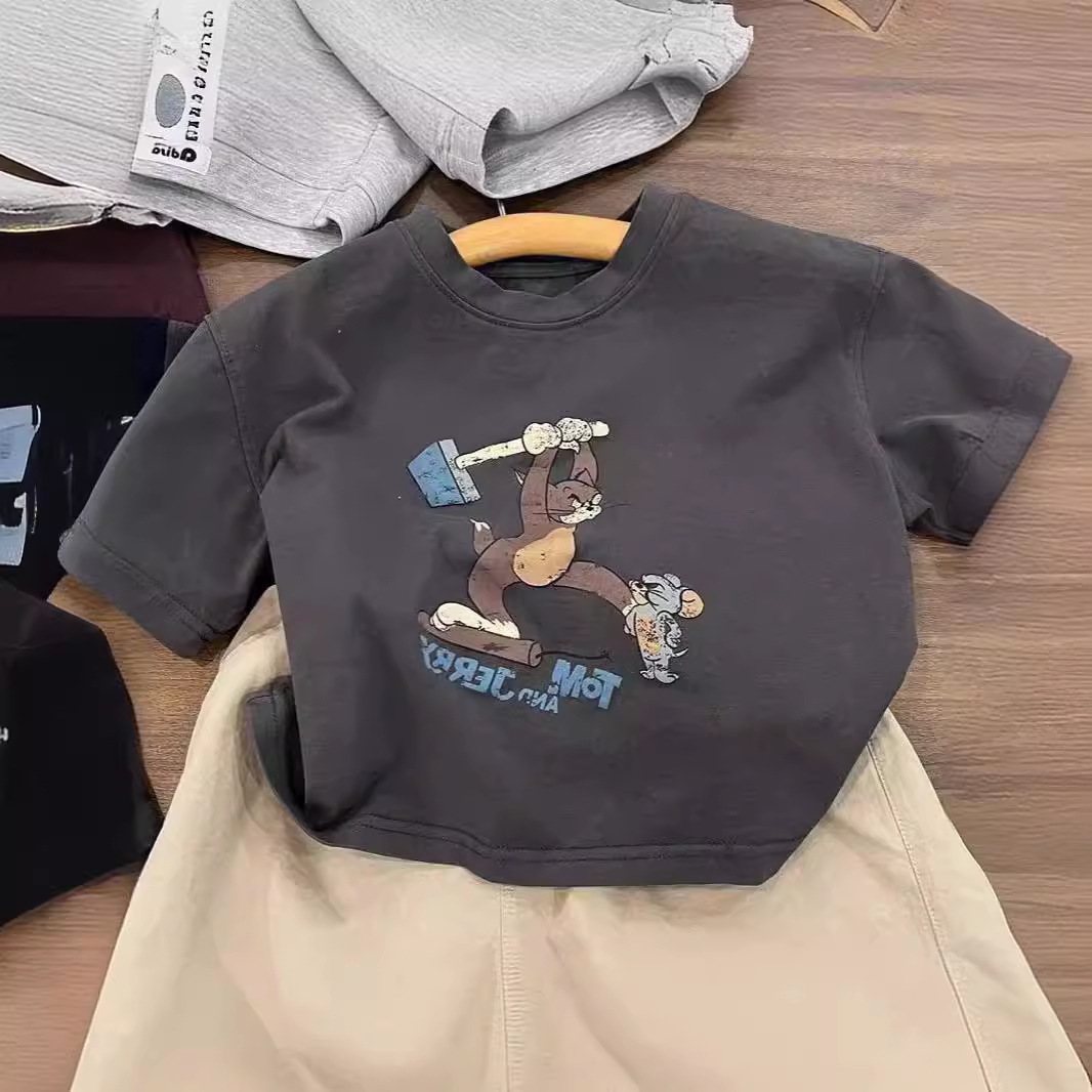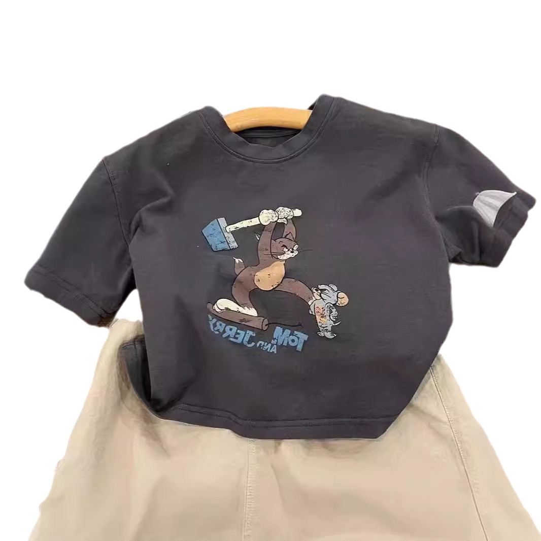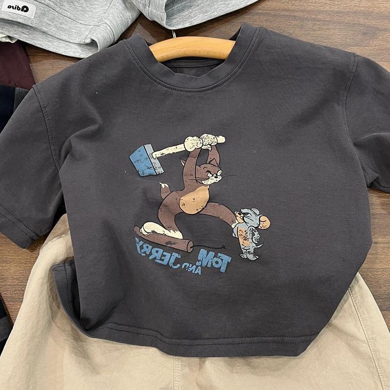 男童夏季短袖纯棉t恤新款小童卡通印花半袖百搭洋气圆领上衣