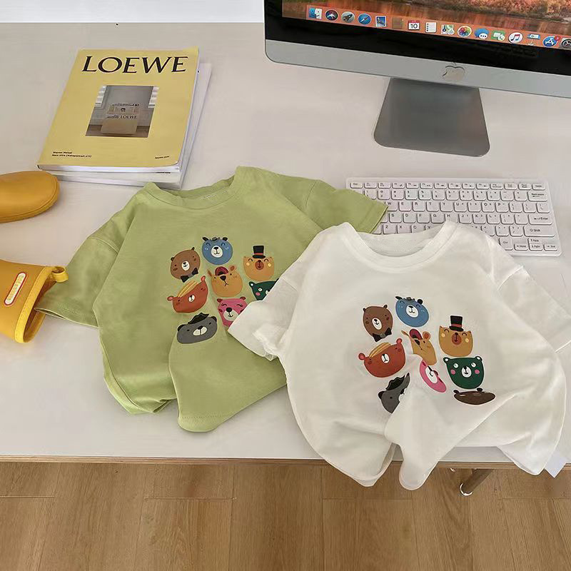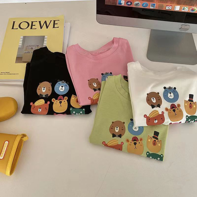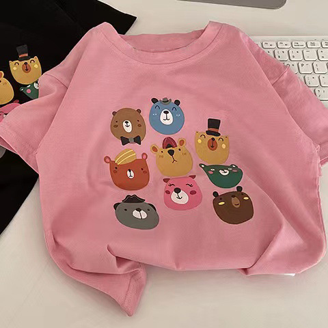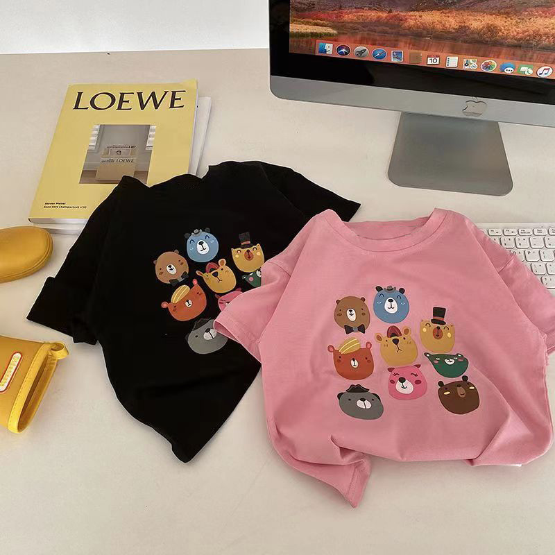 纯棉女童t恤短袖男童夏季新款儿童百搭印花卡通洋气半袖上衣