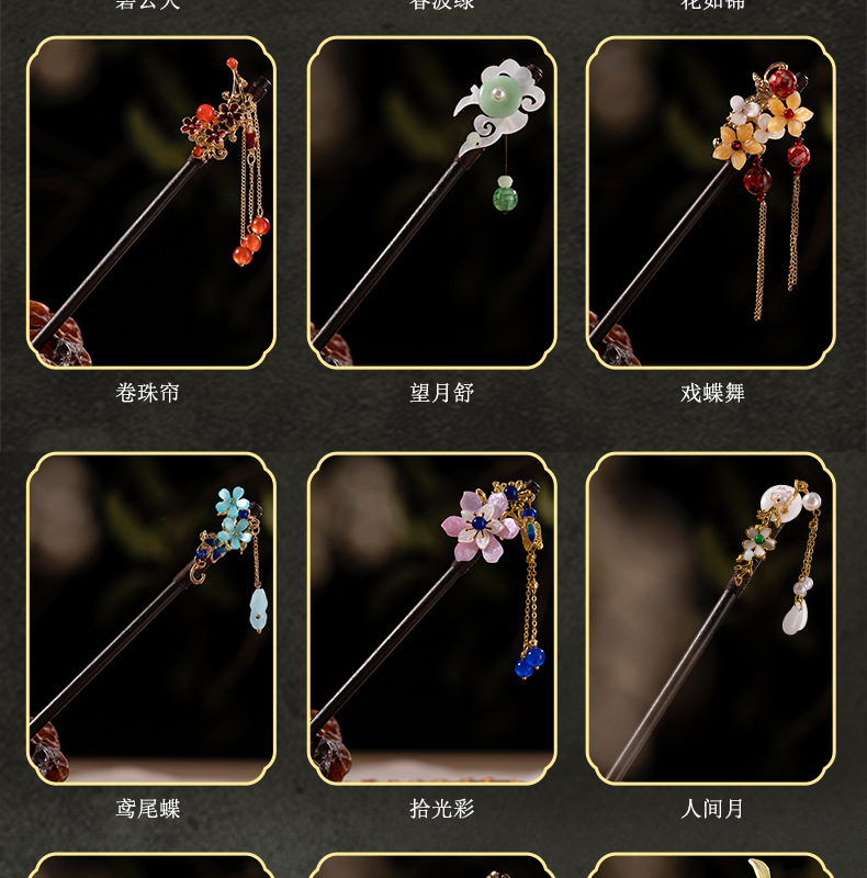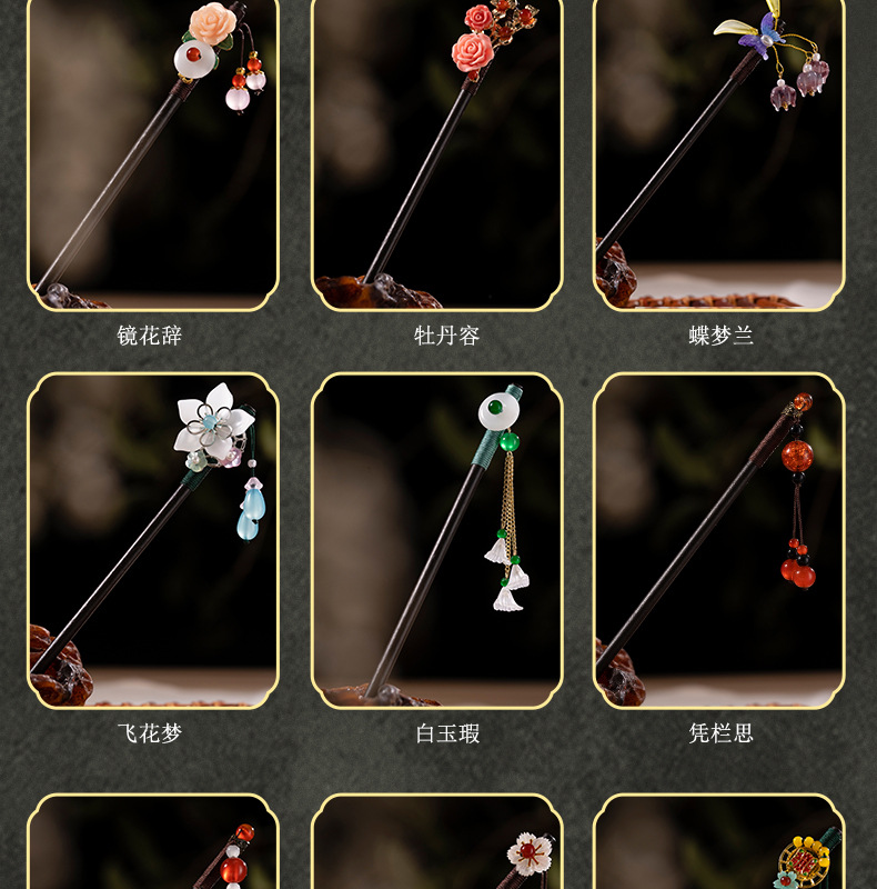 古风发簪流苏步摇木簪子女仿黑檀木头饰盘发汉服配饰古装发钗挽发