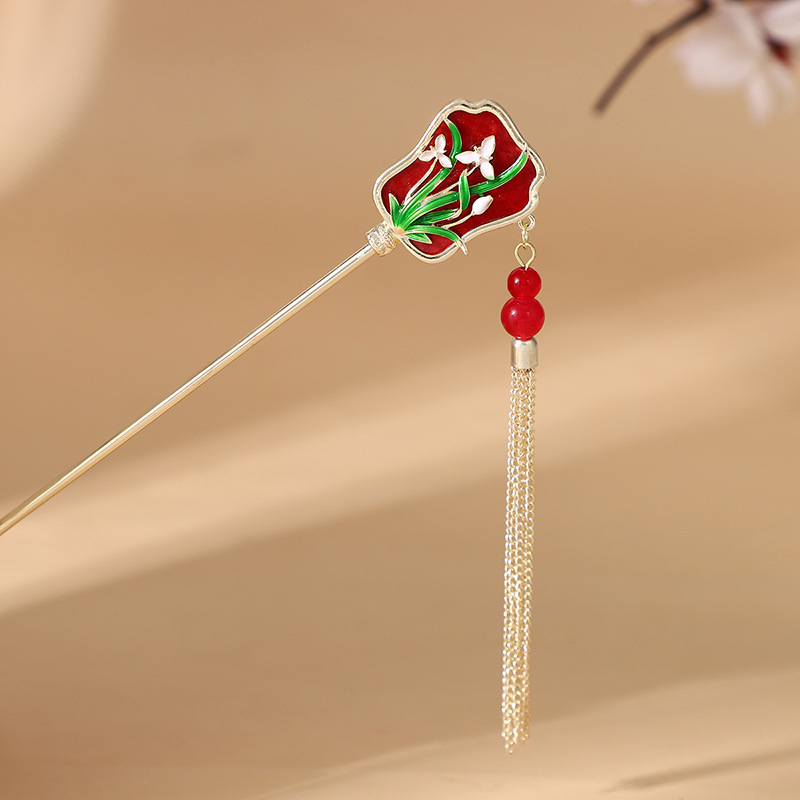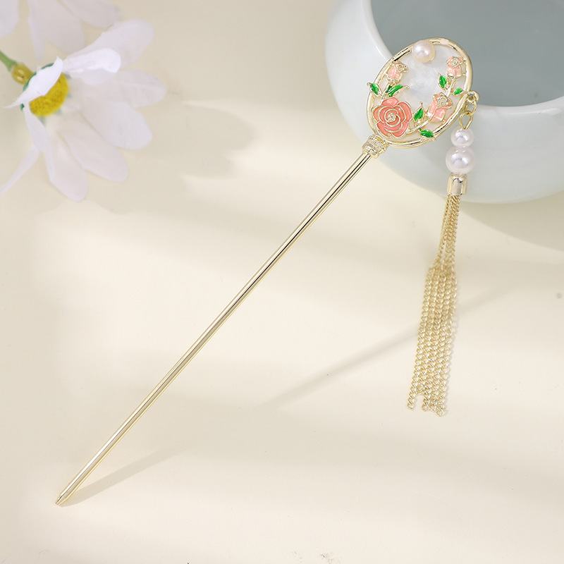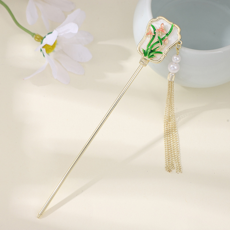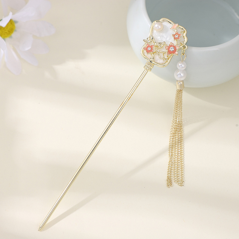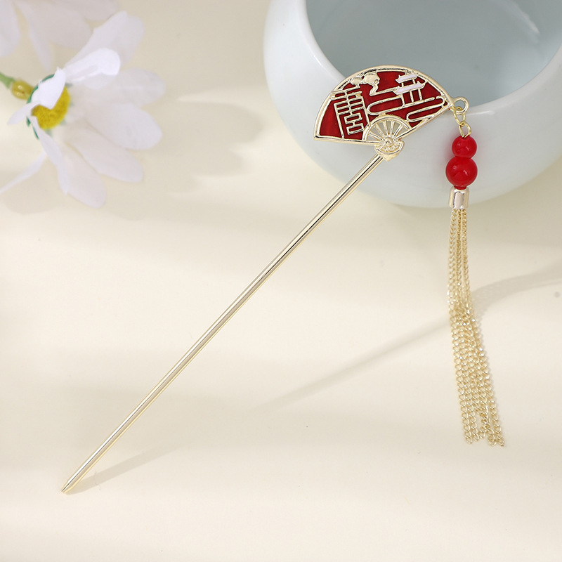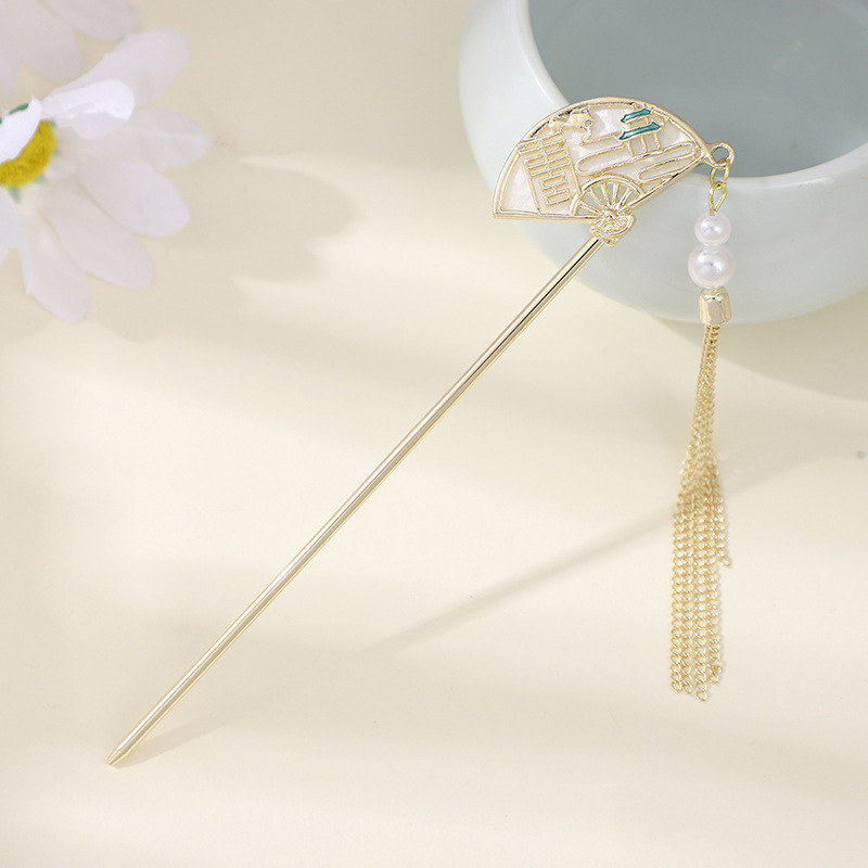 古风发簪金属盘发流苏汉服发钗百搭日常扇形新中式旗袍头饰发饰女