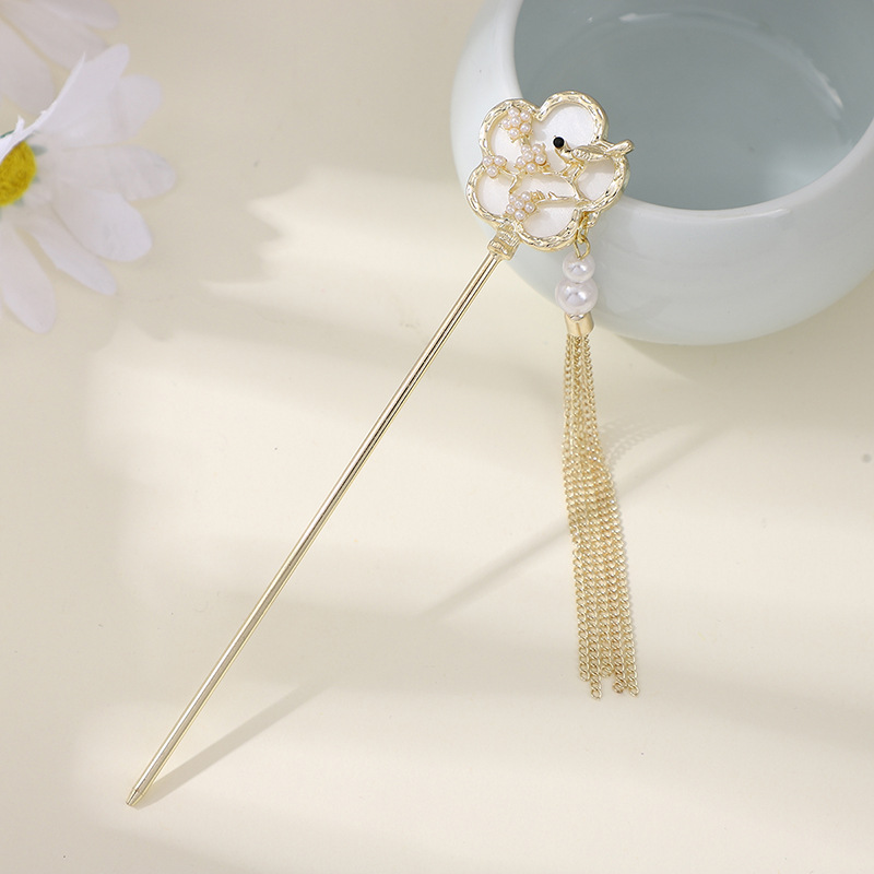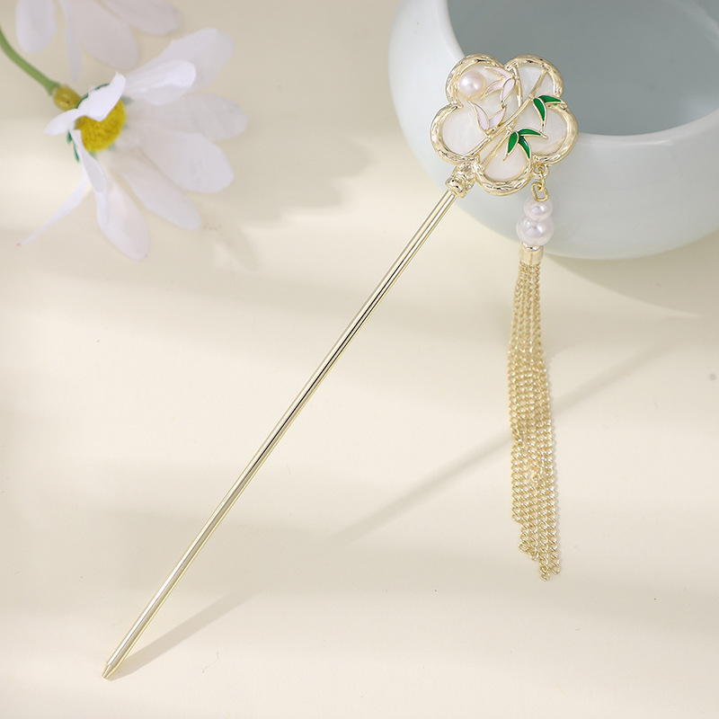 新中式花朵玉兔发簪高级感金属短发盘发步摇流苏古风汉服簪子发钗