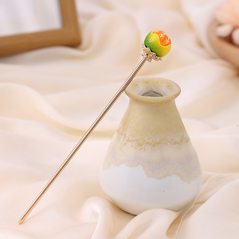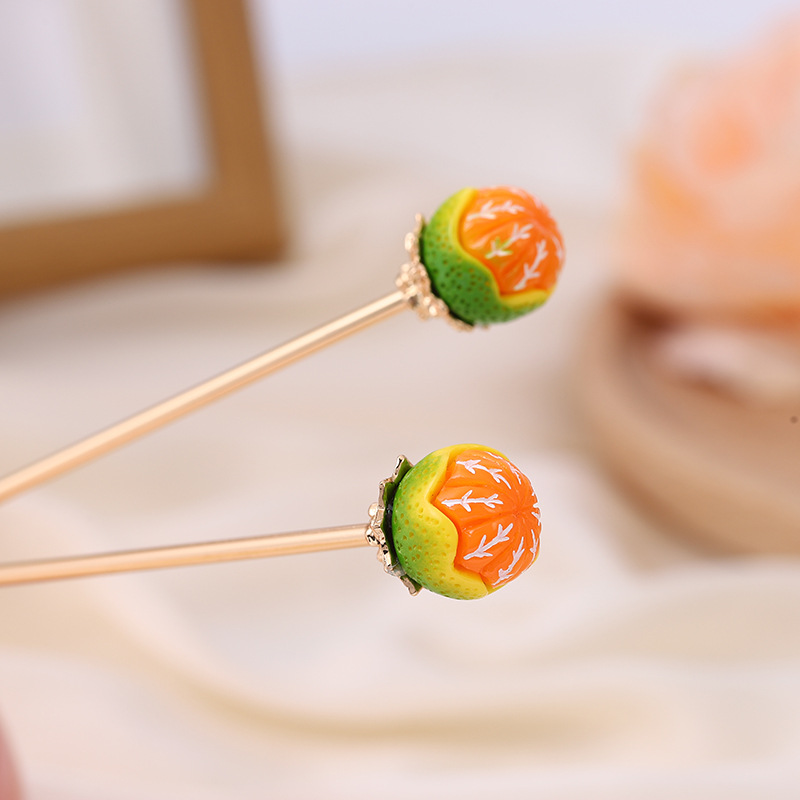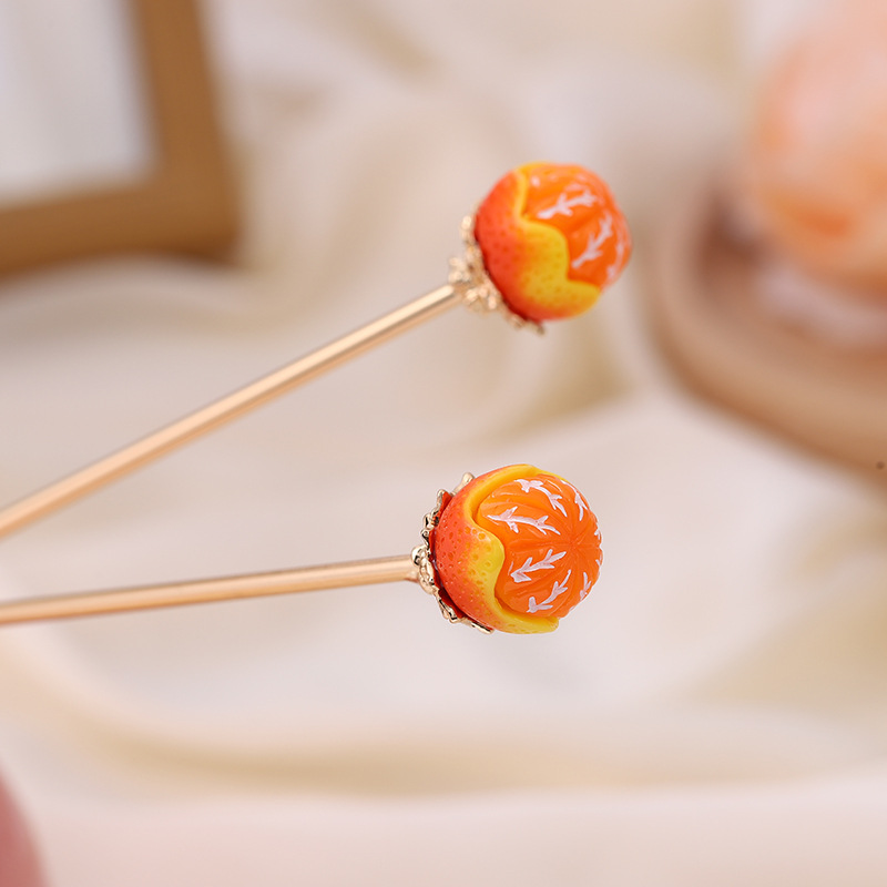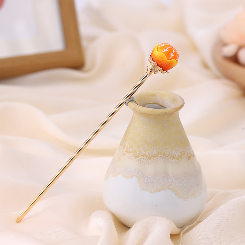 橘子簪子简约现代小众设计感新中式发簪盘发可爱发卡后脑勺头饰女