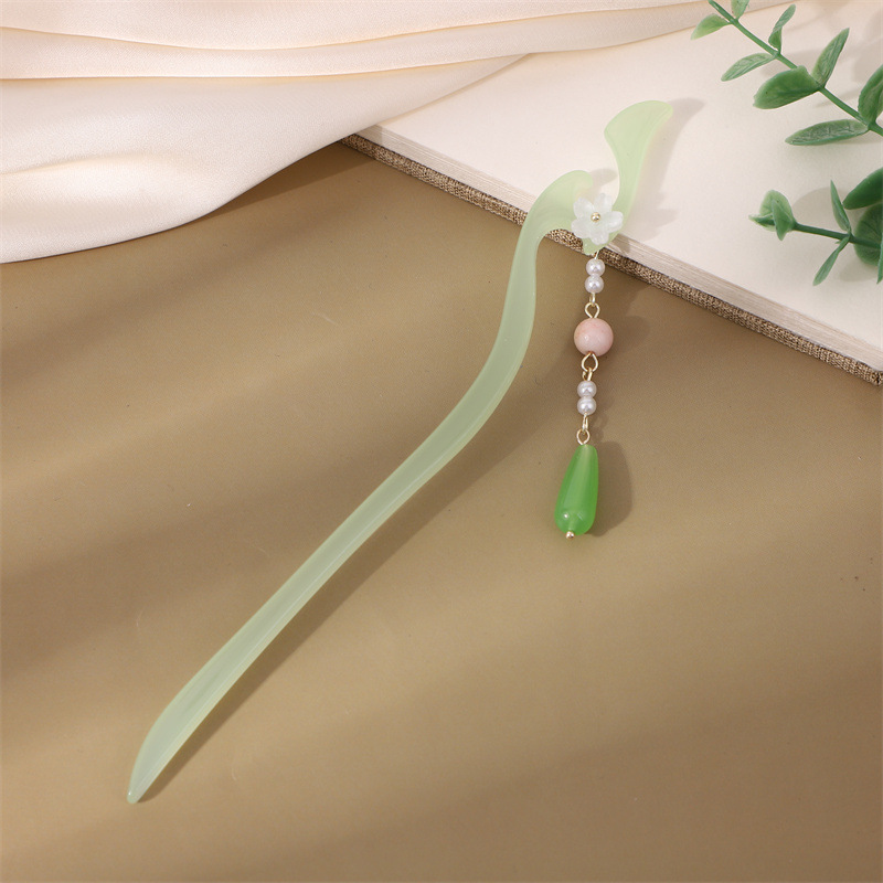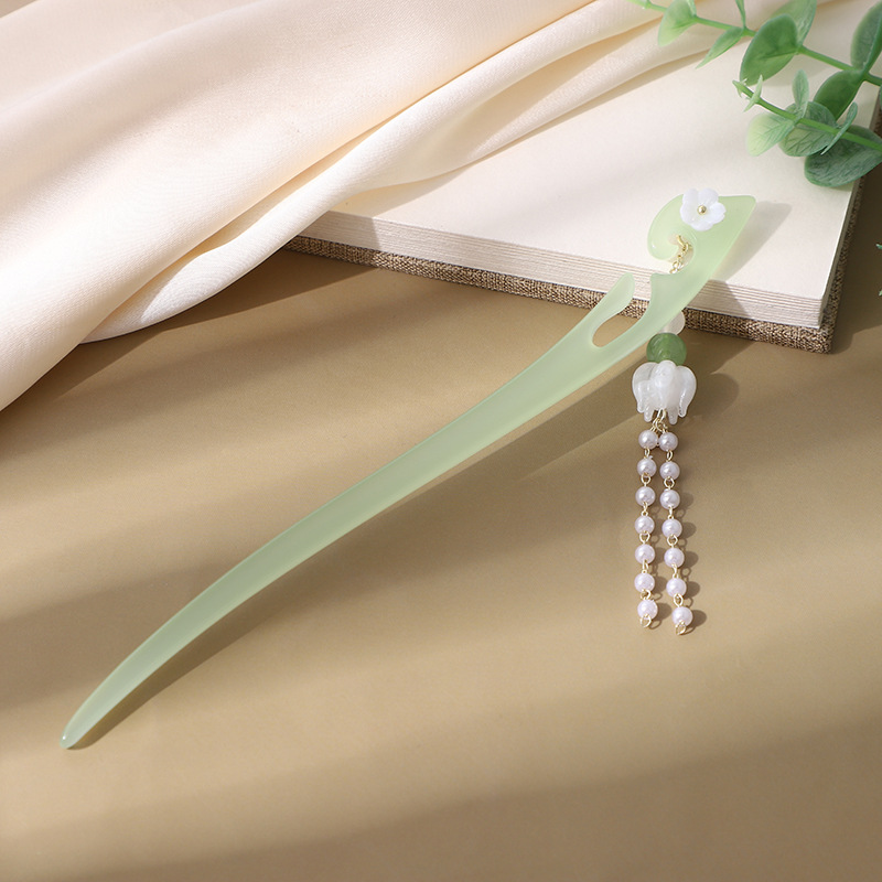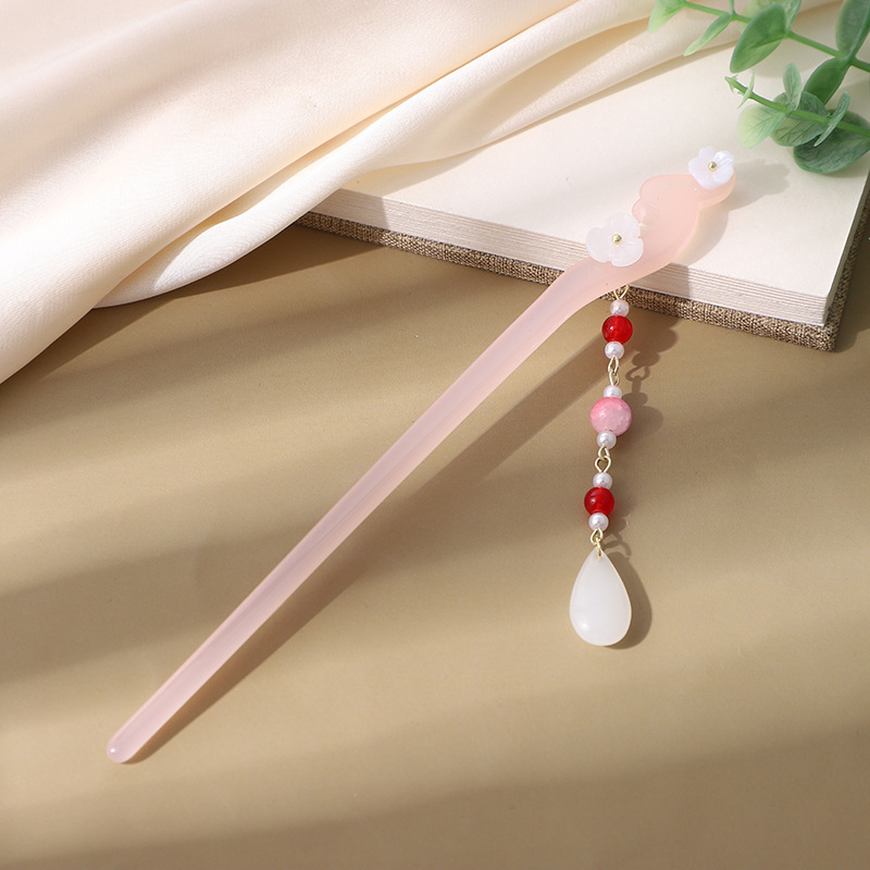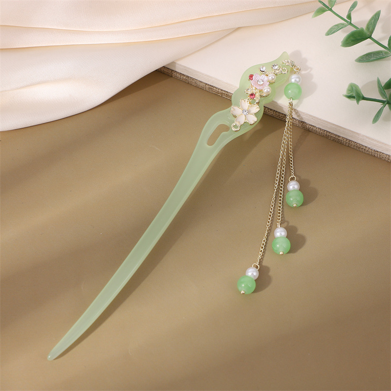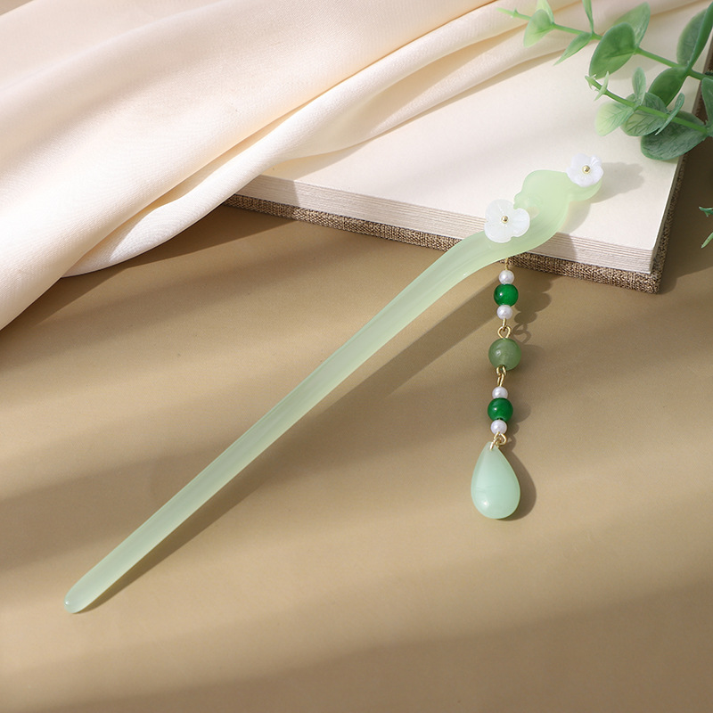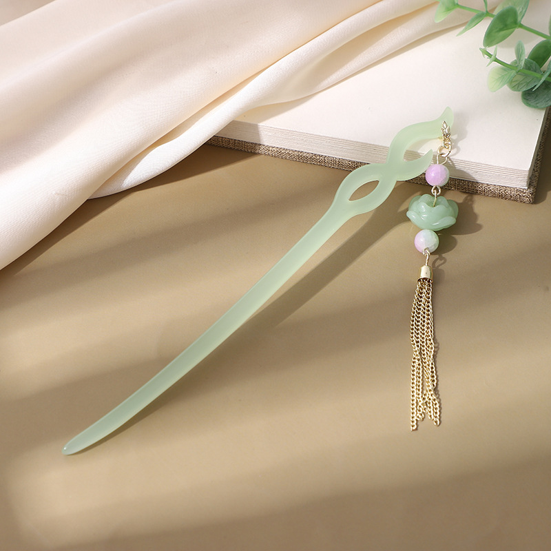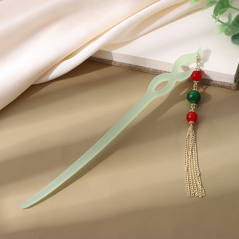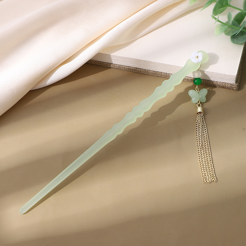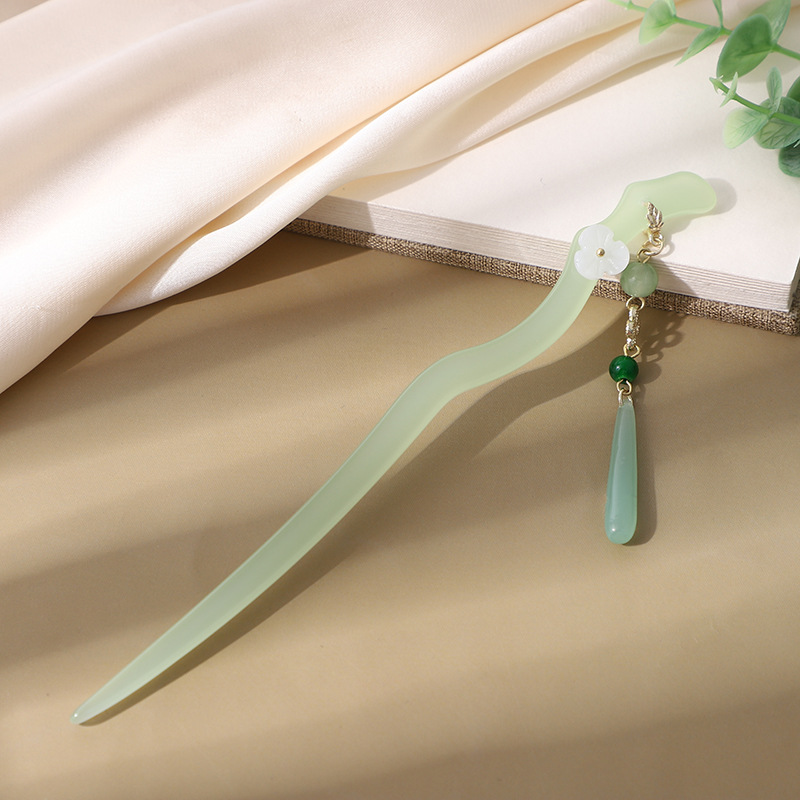 古风仿玉流苏发簪板材盘发新中式汉服精雕配饰日常挽发古装发钗女