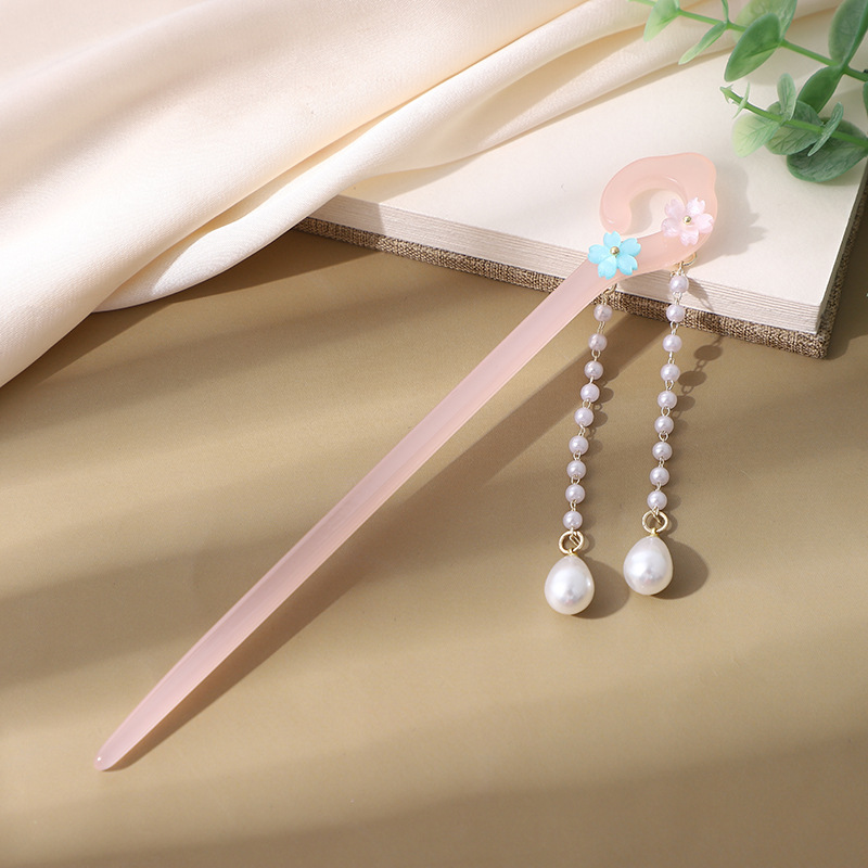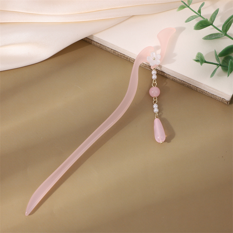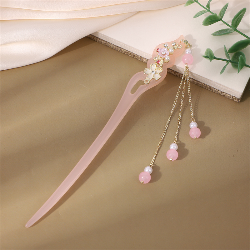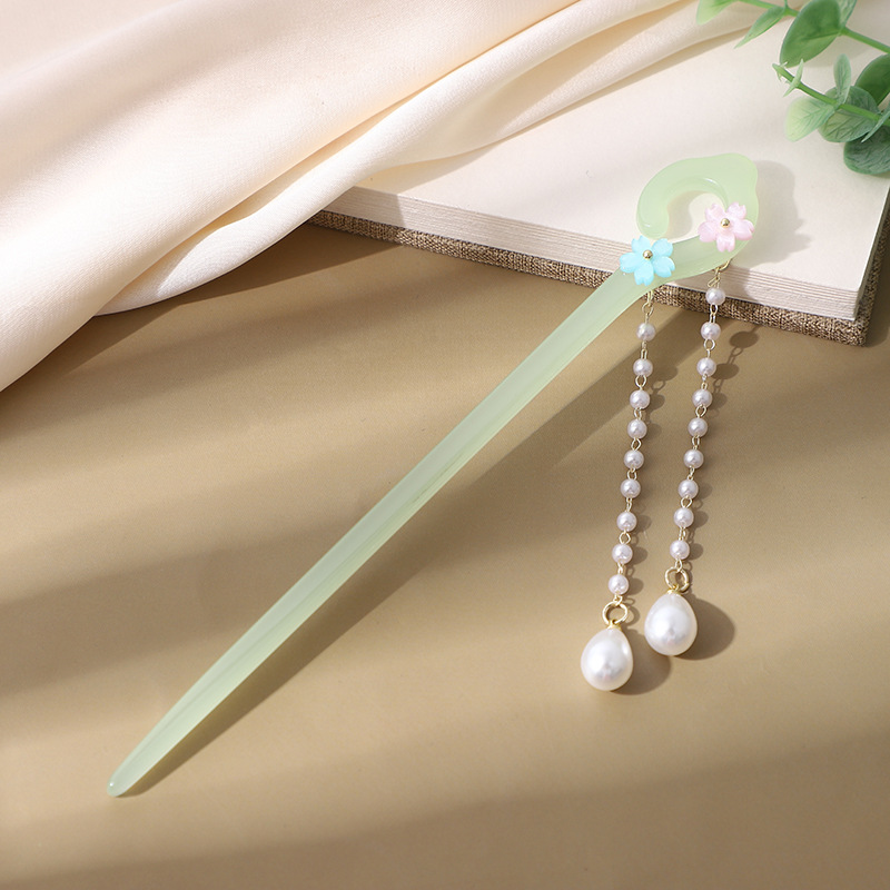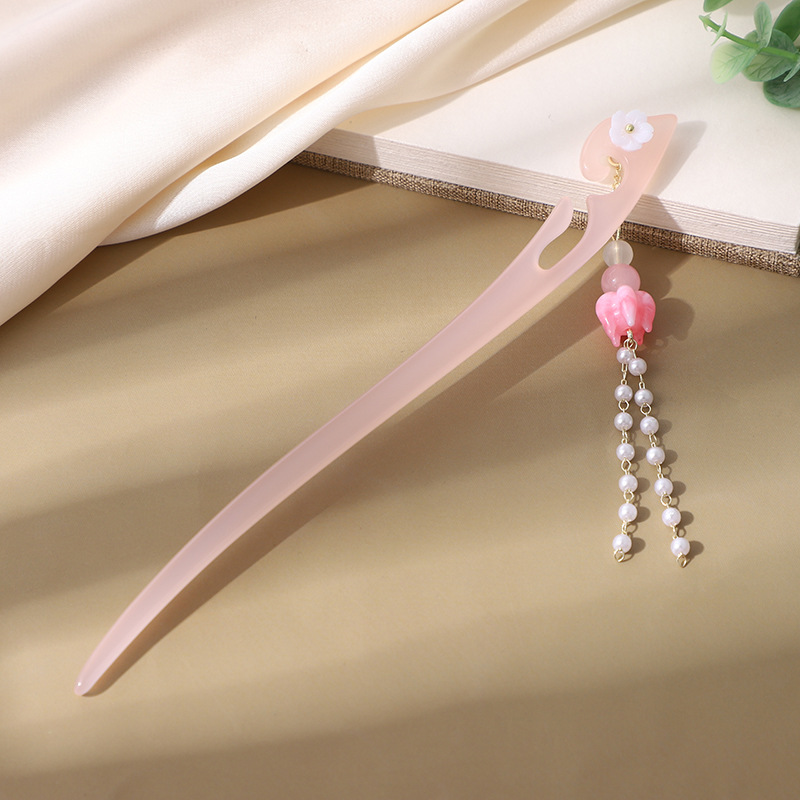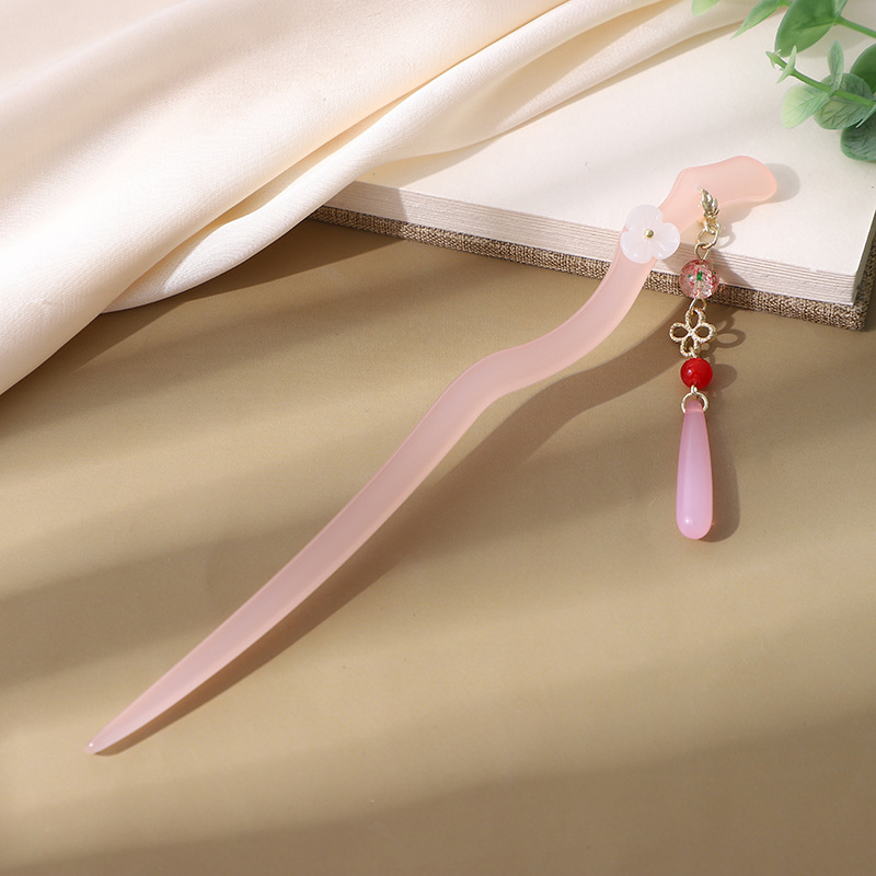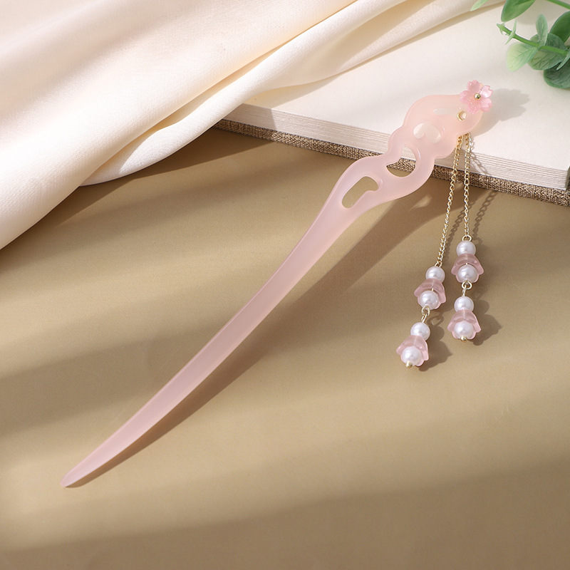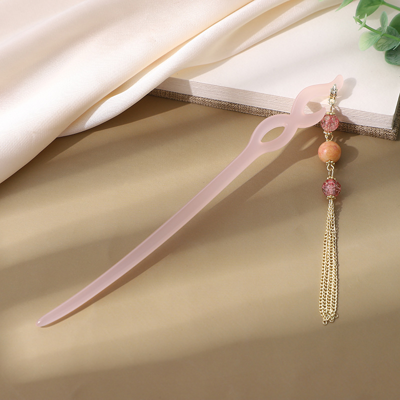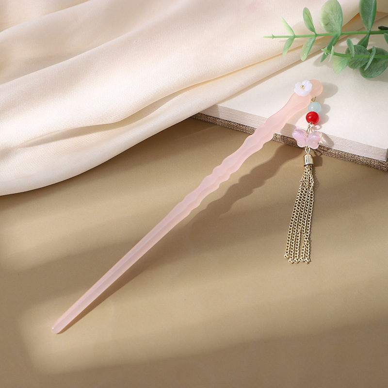 古风仿玉流苏发簪板材盘发新中式汉服精雕配饰日常挽发古装发钗女