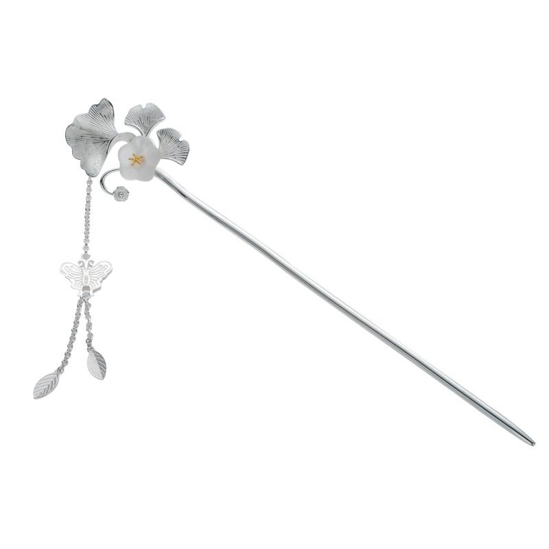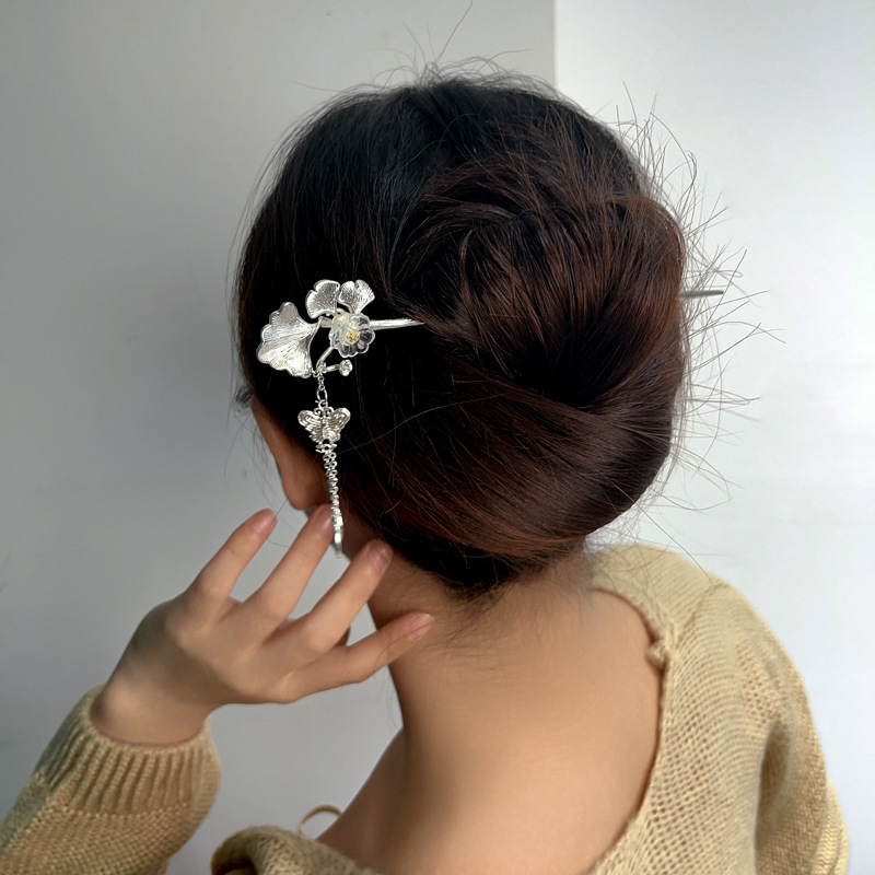古风三生有杏银杏叶珍珠发簪女现代简约高级感汉服旗袍盘发发钗潮