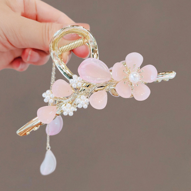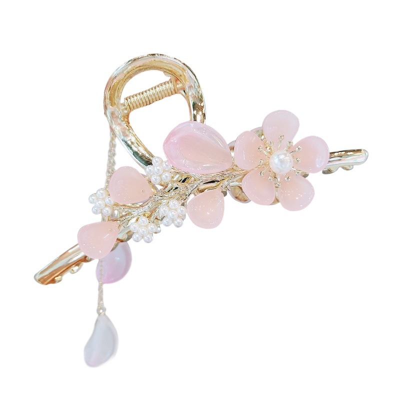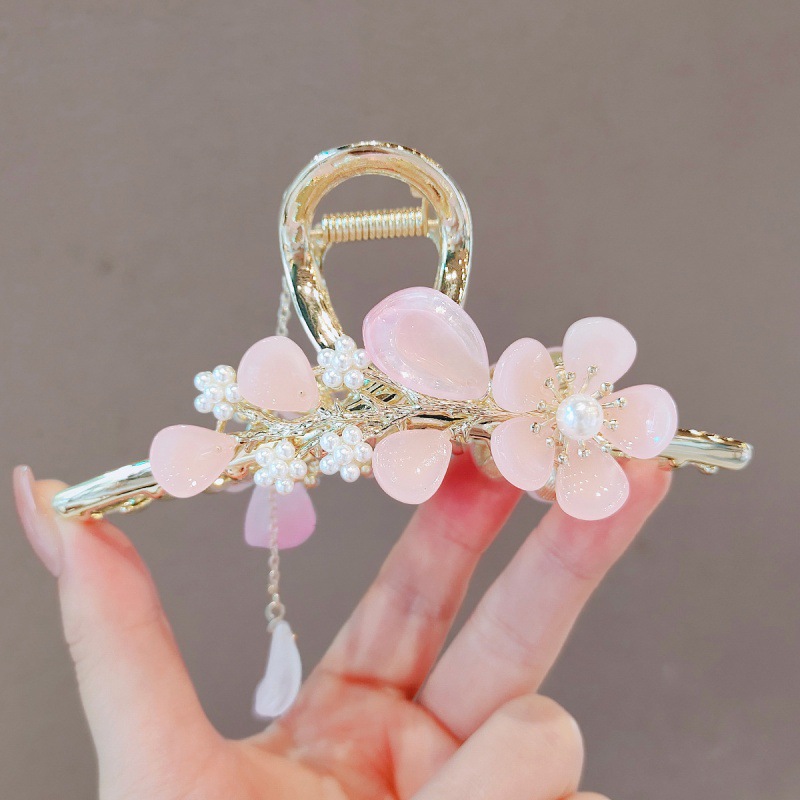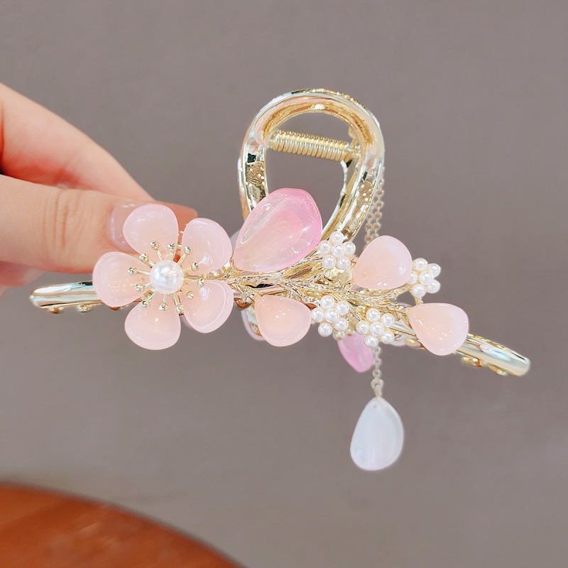 ins超仙款古风花朵发夹后脑勺流苏大号发抓鲨鱼夹抓夹子汉服配饰