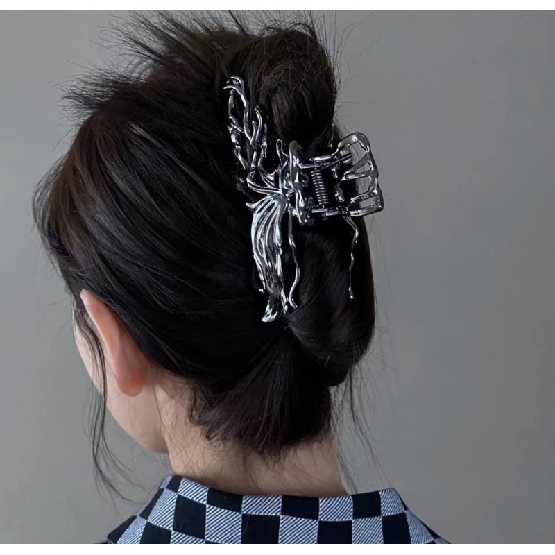 ins韩版冷淡风液态蝴蝶抓夹大号鲨鱼夹网红小众发夹金属盘发发夹