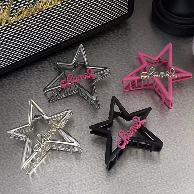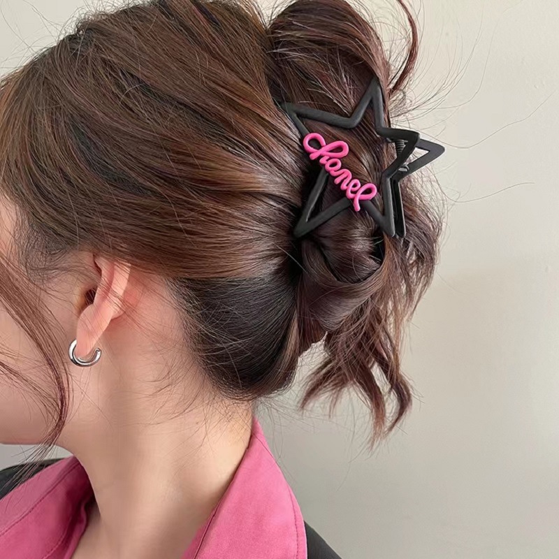 甜酷辣妹芭比字母五角星抓夹后脑勺盘发鲨鱼夹百搭星星发抓头饰