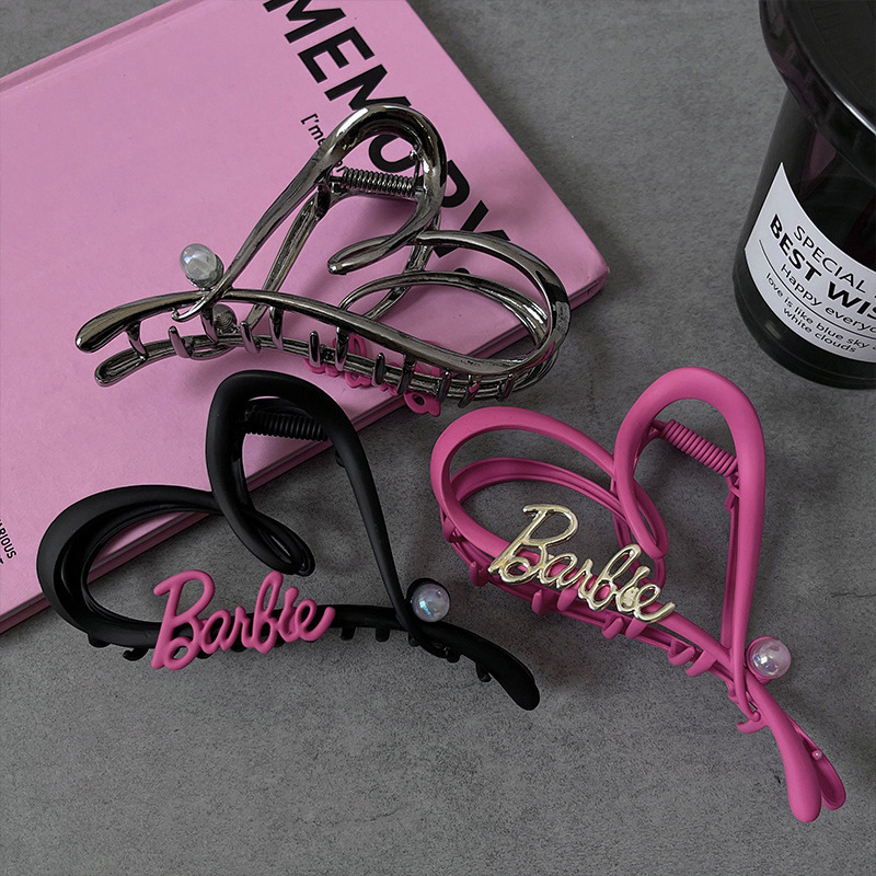 ins甜酷芭比小众爱心抓夹女后脑勺盘发鲨鱼夹发夹发卡高级感发饰