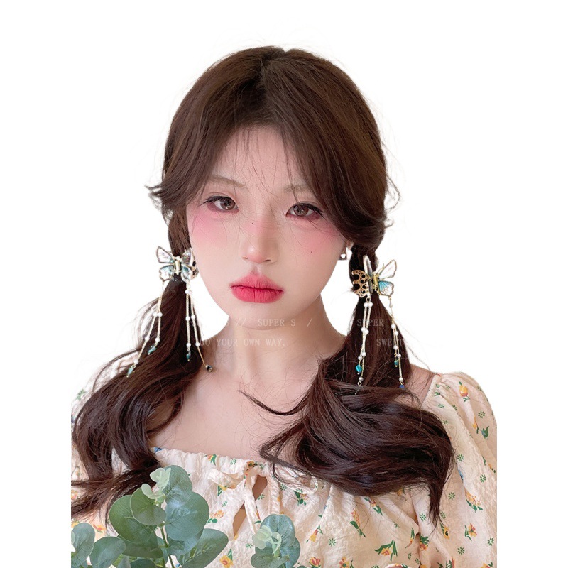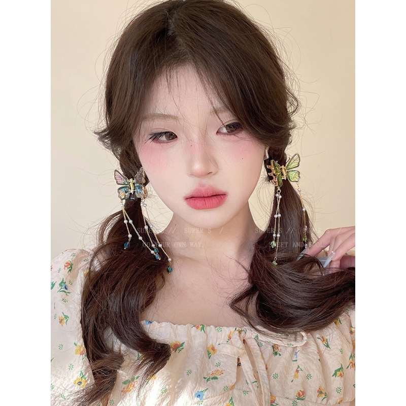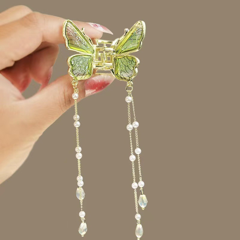 蝶泳绿蝴蝶流苏抓夹