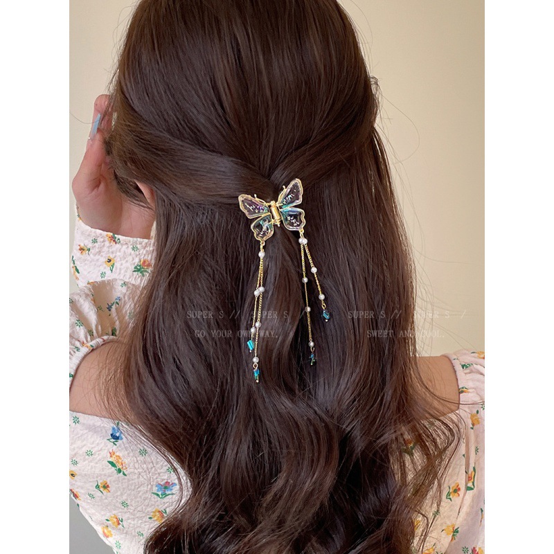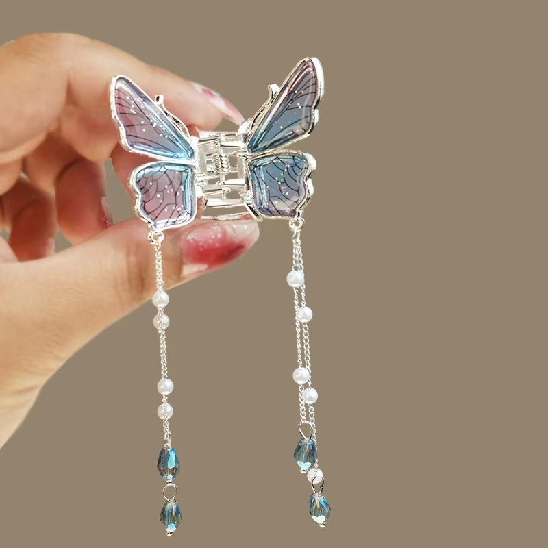 冰水蓝蝴蝶流苏抓夹