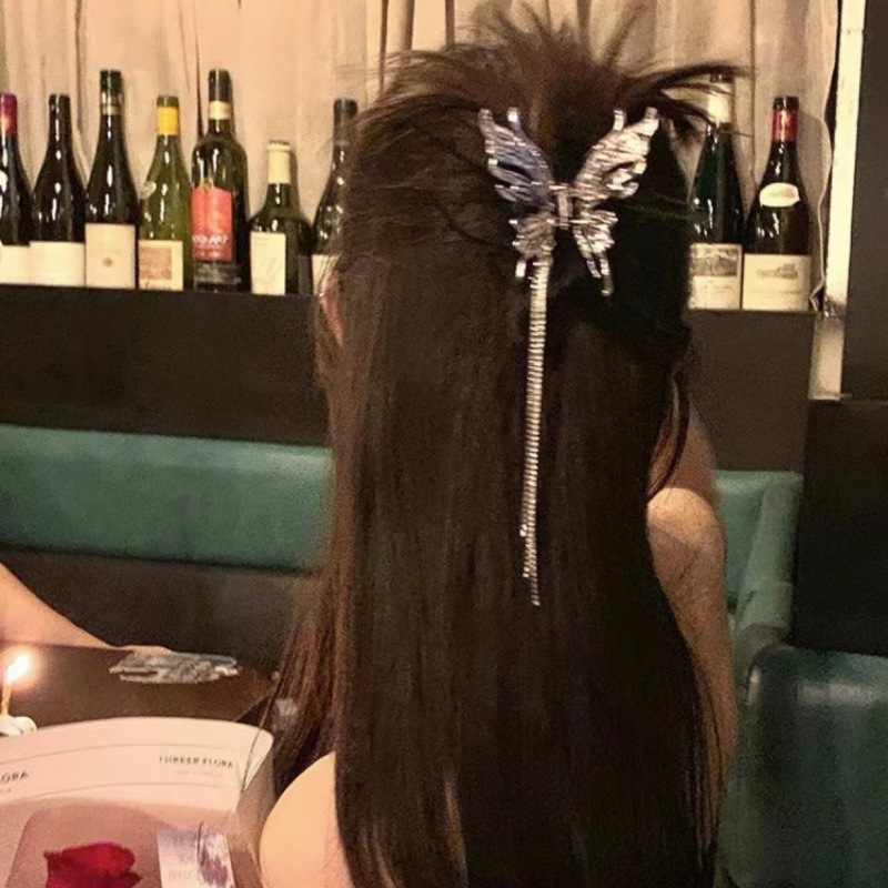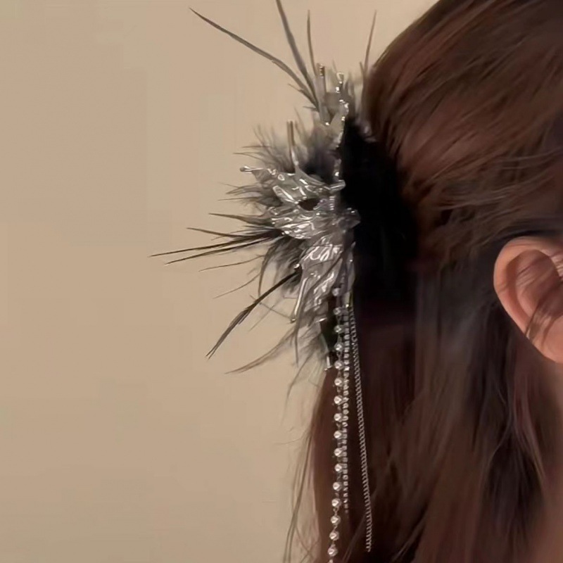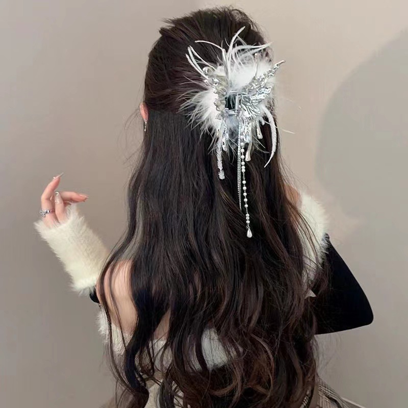 羽毛抓夹发夹女新款高级感液态蝴蝶刘海夹后脑勺发量少鲨鱼夹