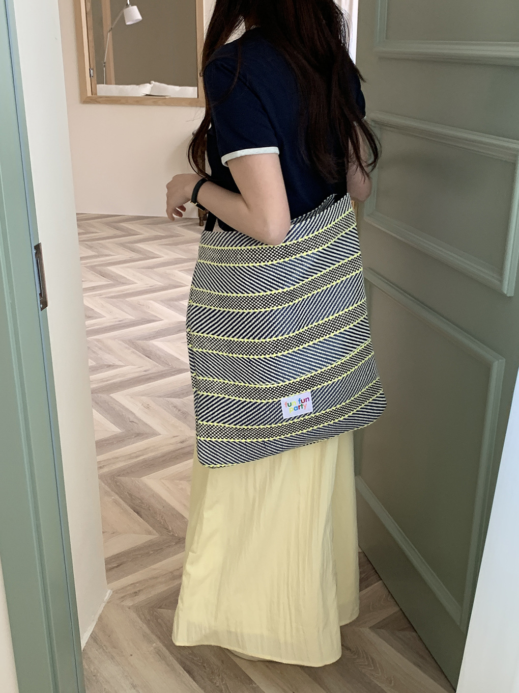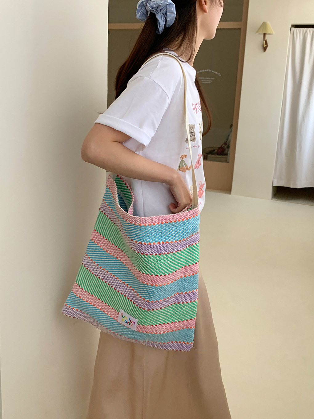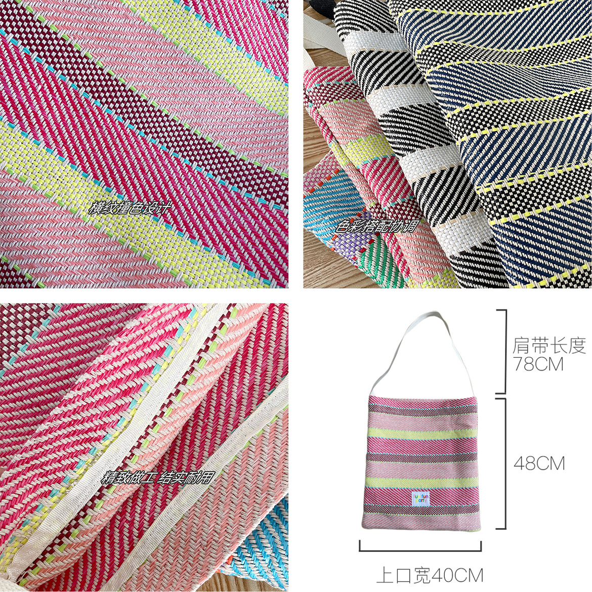 多巴胺撞色条纹单肩包手工编织托特包大容量斜挎包韩版通勤包春夏