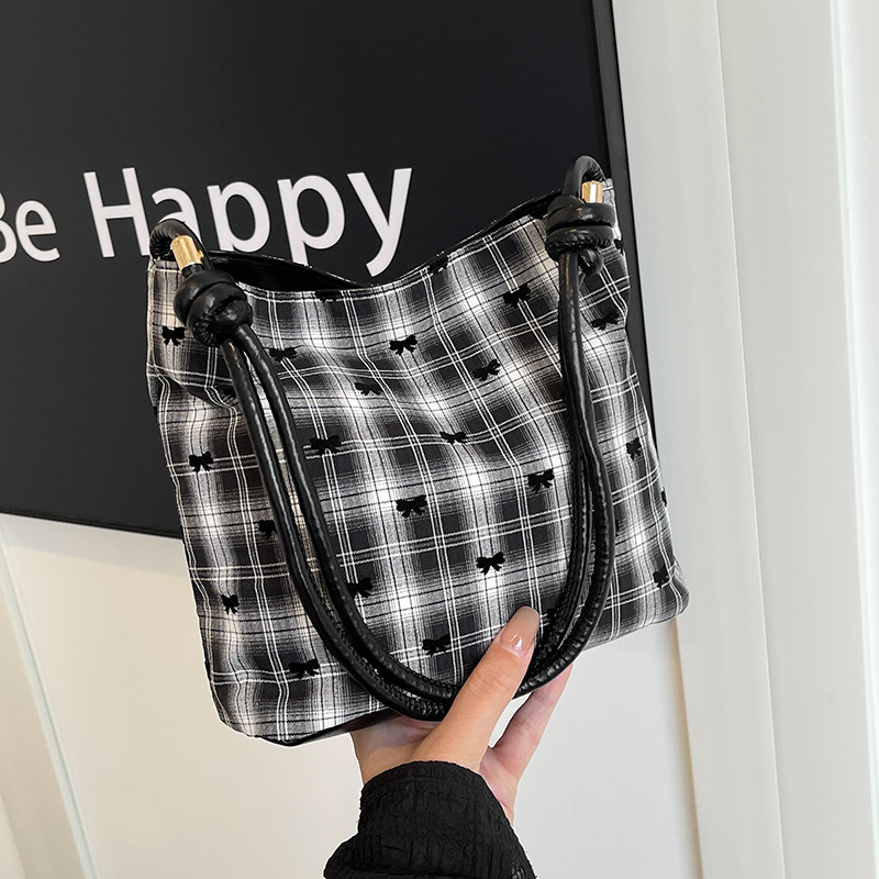 撞色女包新款简约时尚洋气水桶包小众格子设计百搭单肩斜挎包