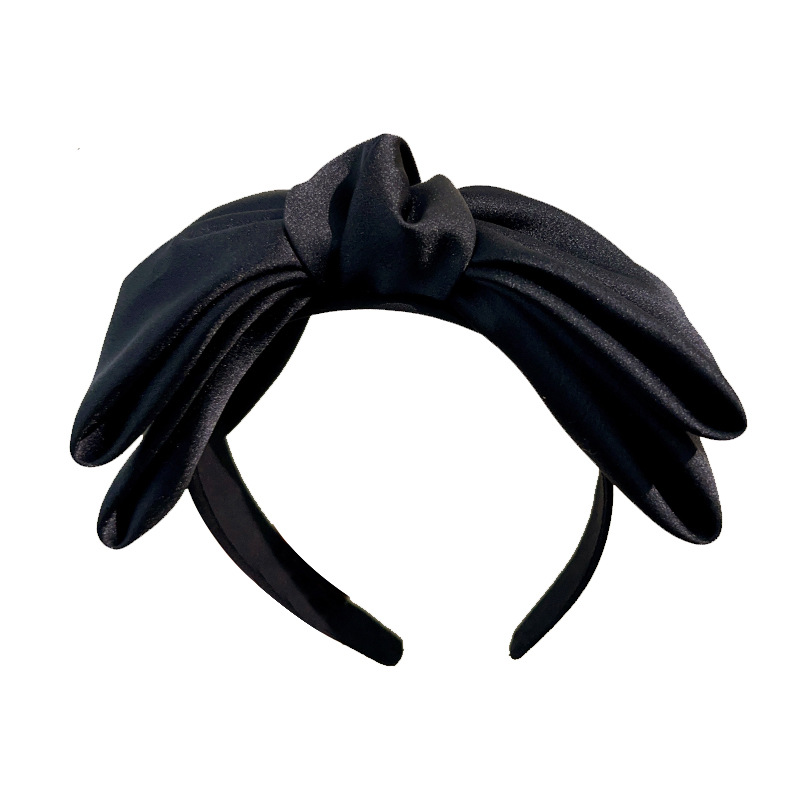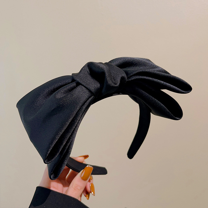 新款黑色超大蝴蝶结发饰简约气质缎面发箍网红外出高颅顶头箍