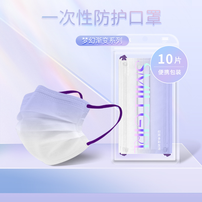 新款渐变口罩一次性口罩国风国潮口罩一次性口罩加印防尘