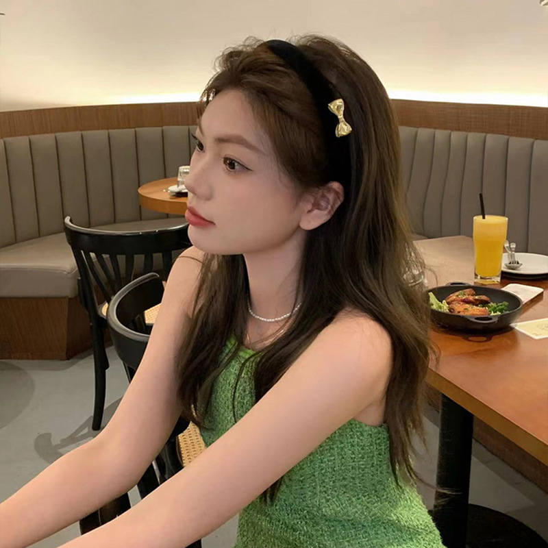 黑色丝绒蝴蝶结头饰发箍女款增高颅顶发卡显脸小压发洗脸头箍