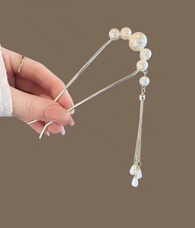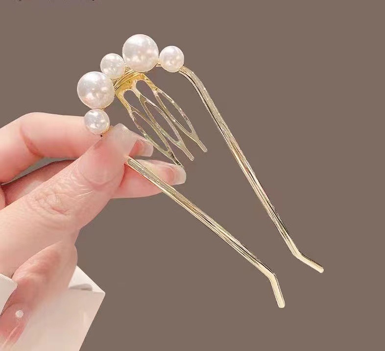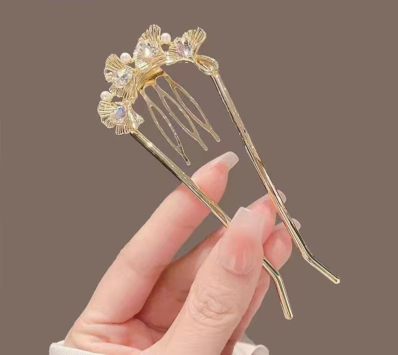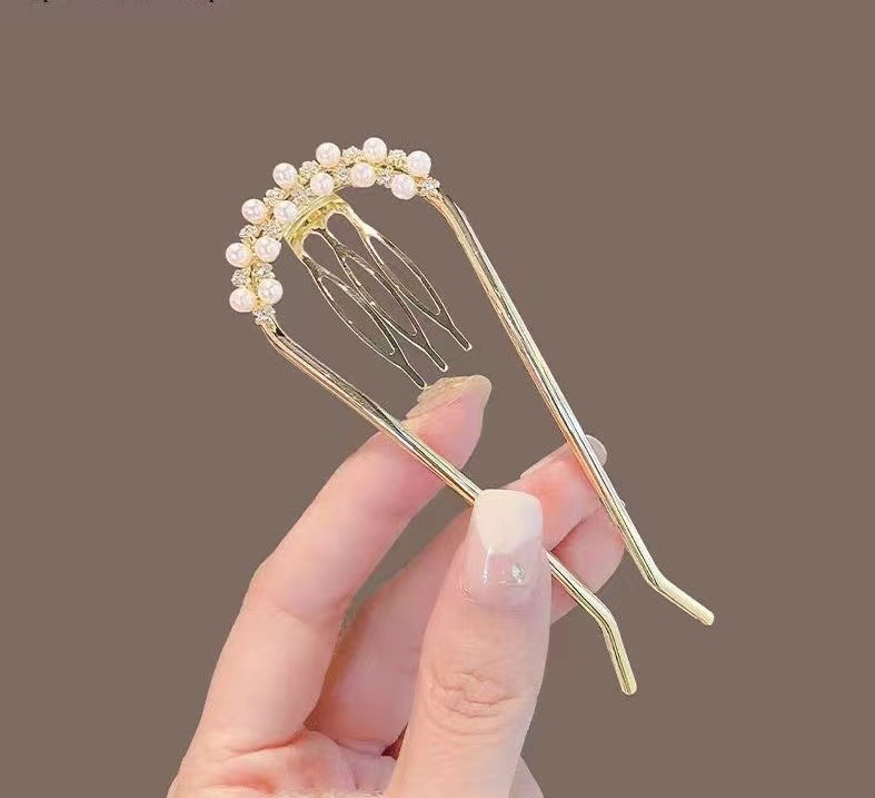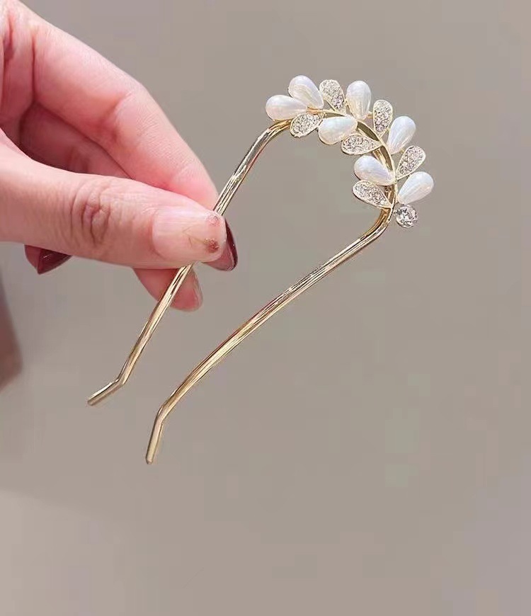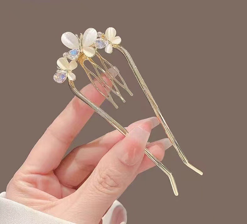 新中式麦穗猫眼石U型发簪高级感盘发倒插梳头饰发梳古风气质发钗