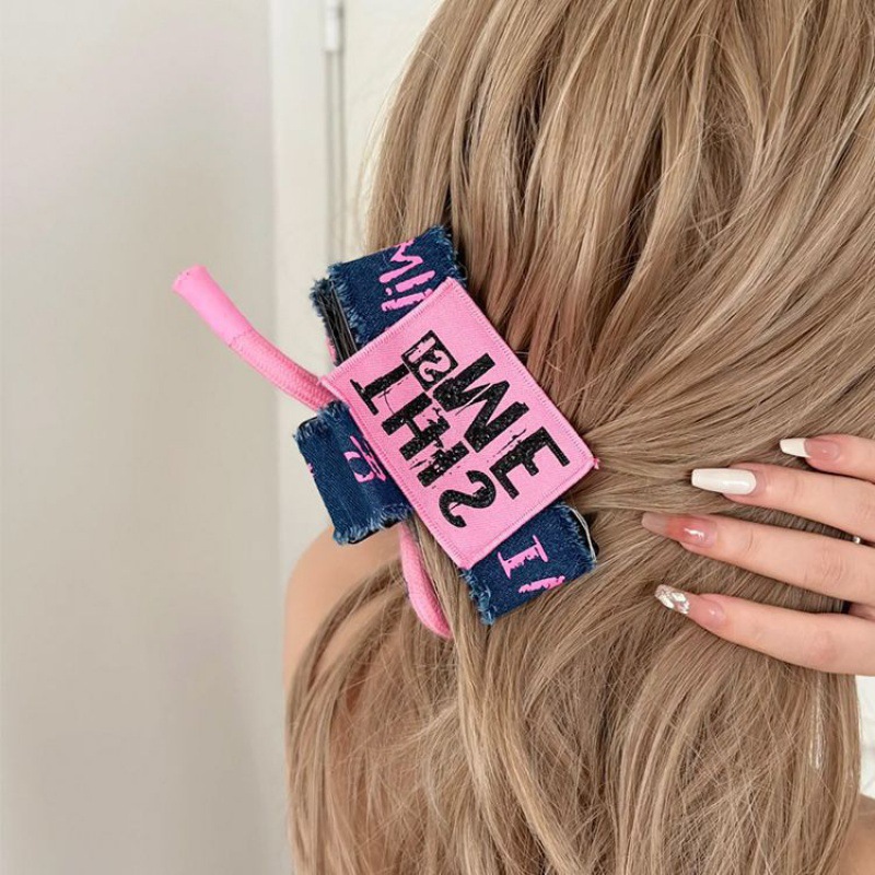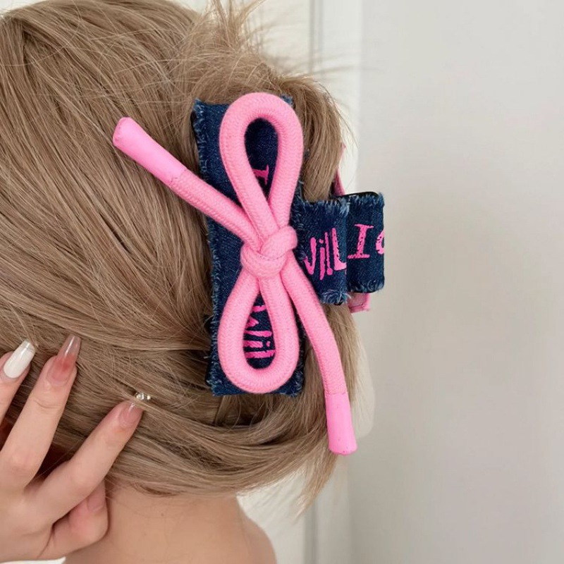 布艺特大号牛仔蝴蝶结八字抓夹女高端后脑勺发量大鲨鱼夹头饰