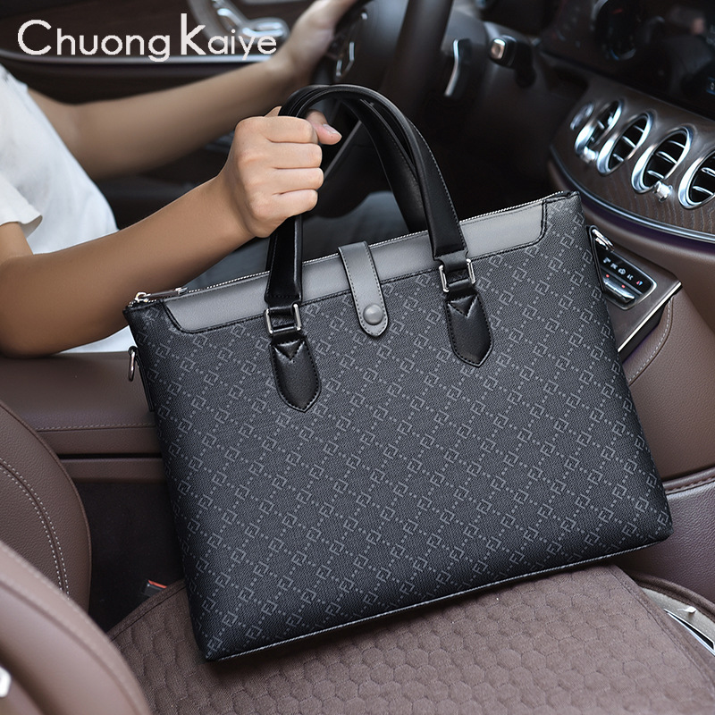 ChuongKaiye男士真皮手提包商务公文包大容量时尚潮流单肩斜挎包