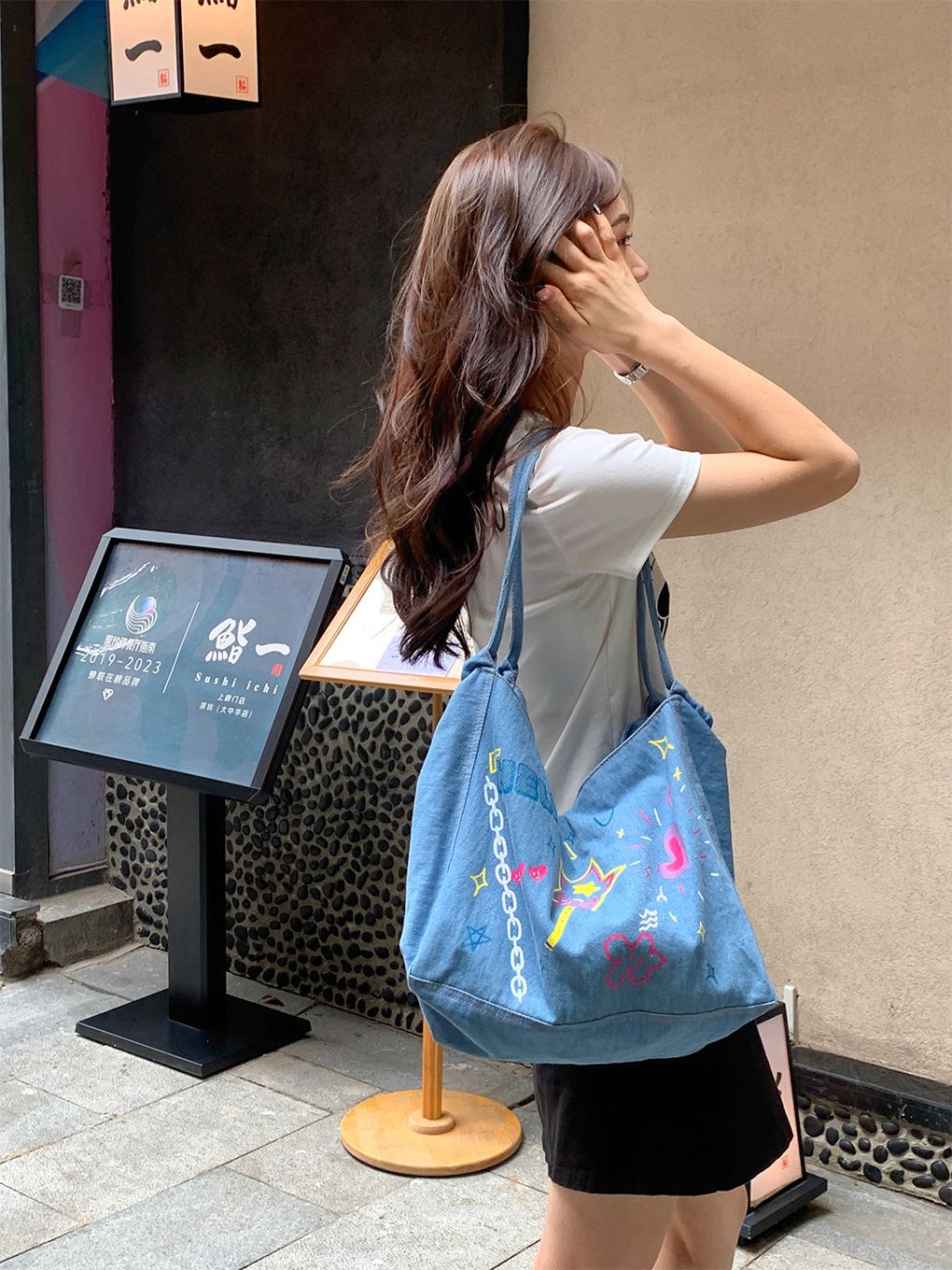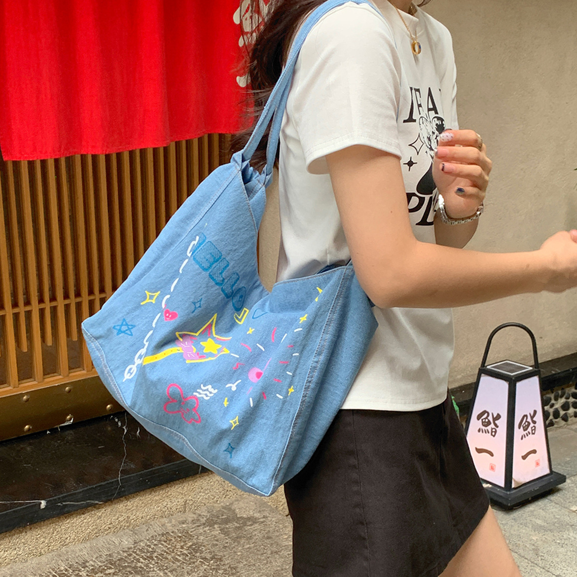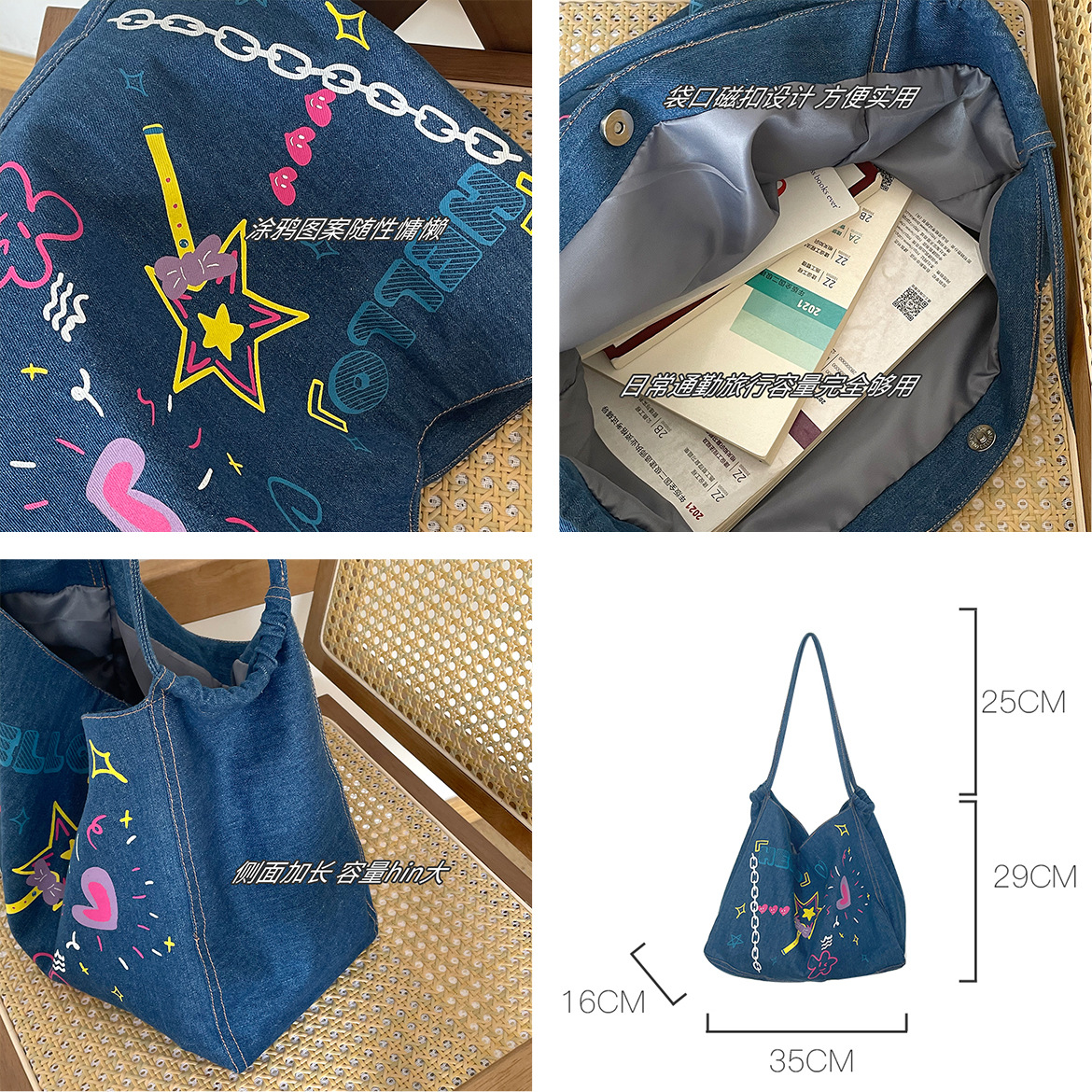 原创涂鸦牛仔托特包大容量帆布包腋下包时尚通勤包