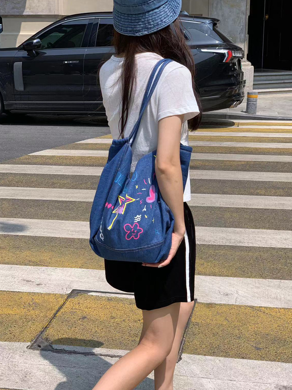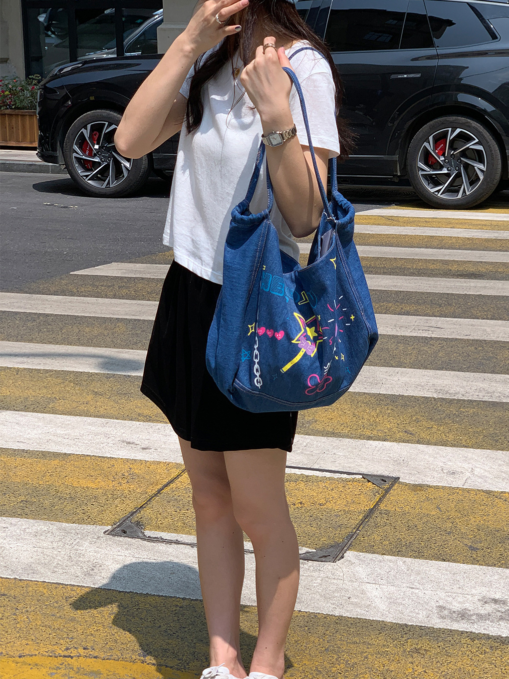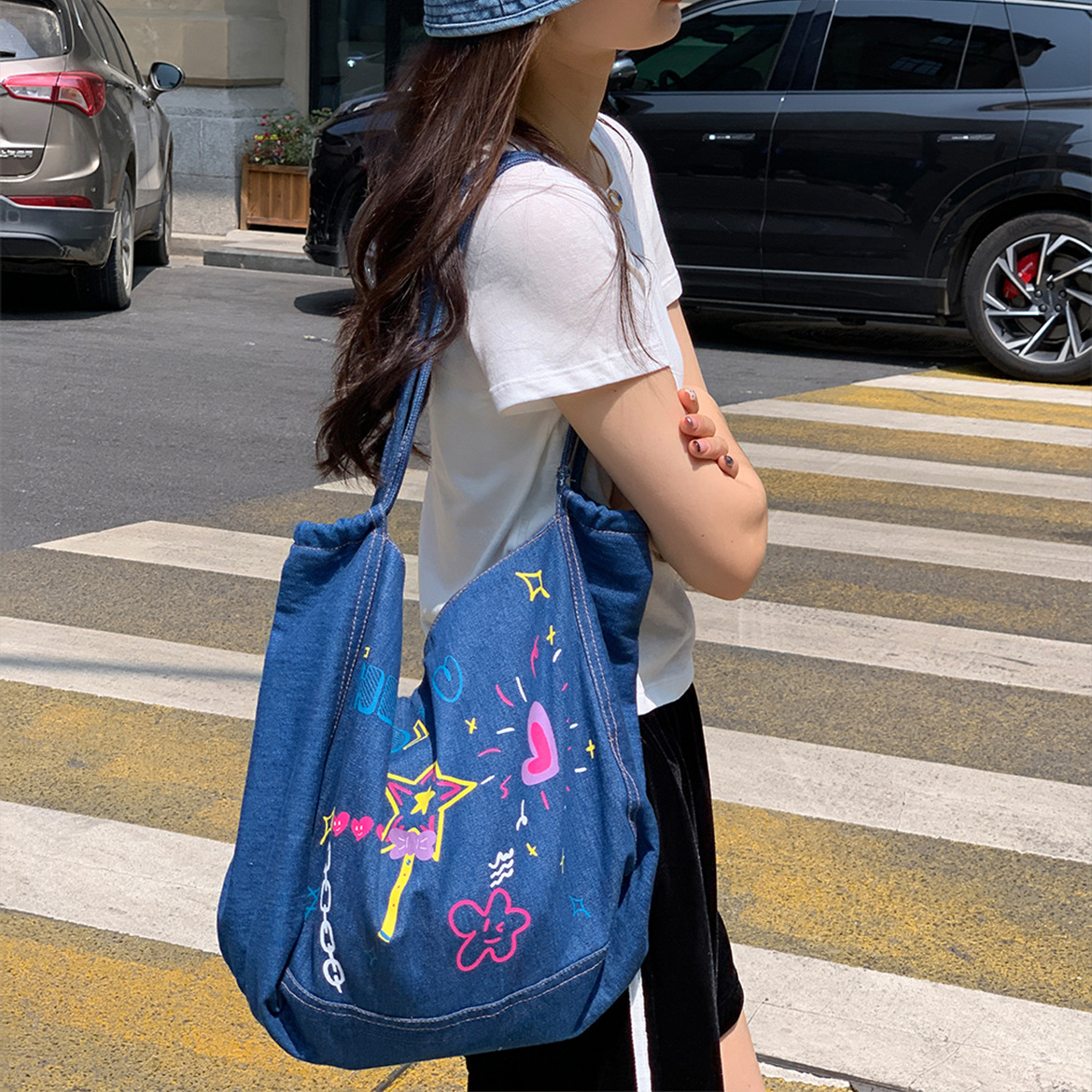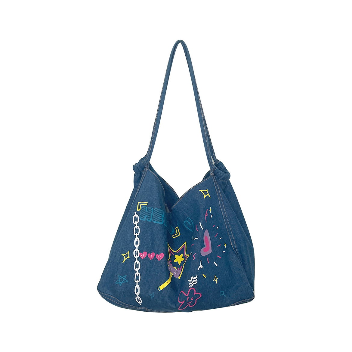 原创涂鸦牛仔托特包大容量帆布包腋下包时尚通勤包