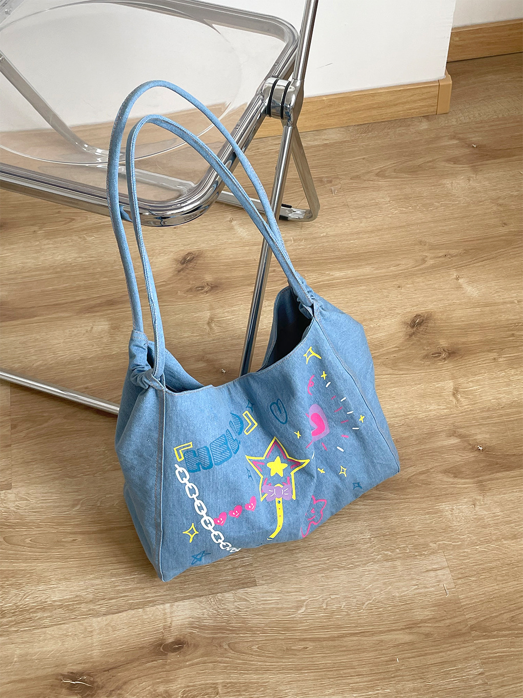 涂鸦牛仔托特包-浅蓝