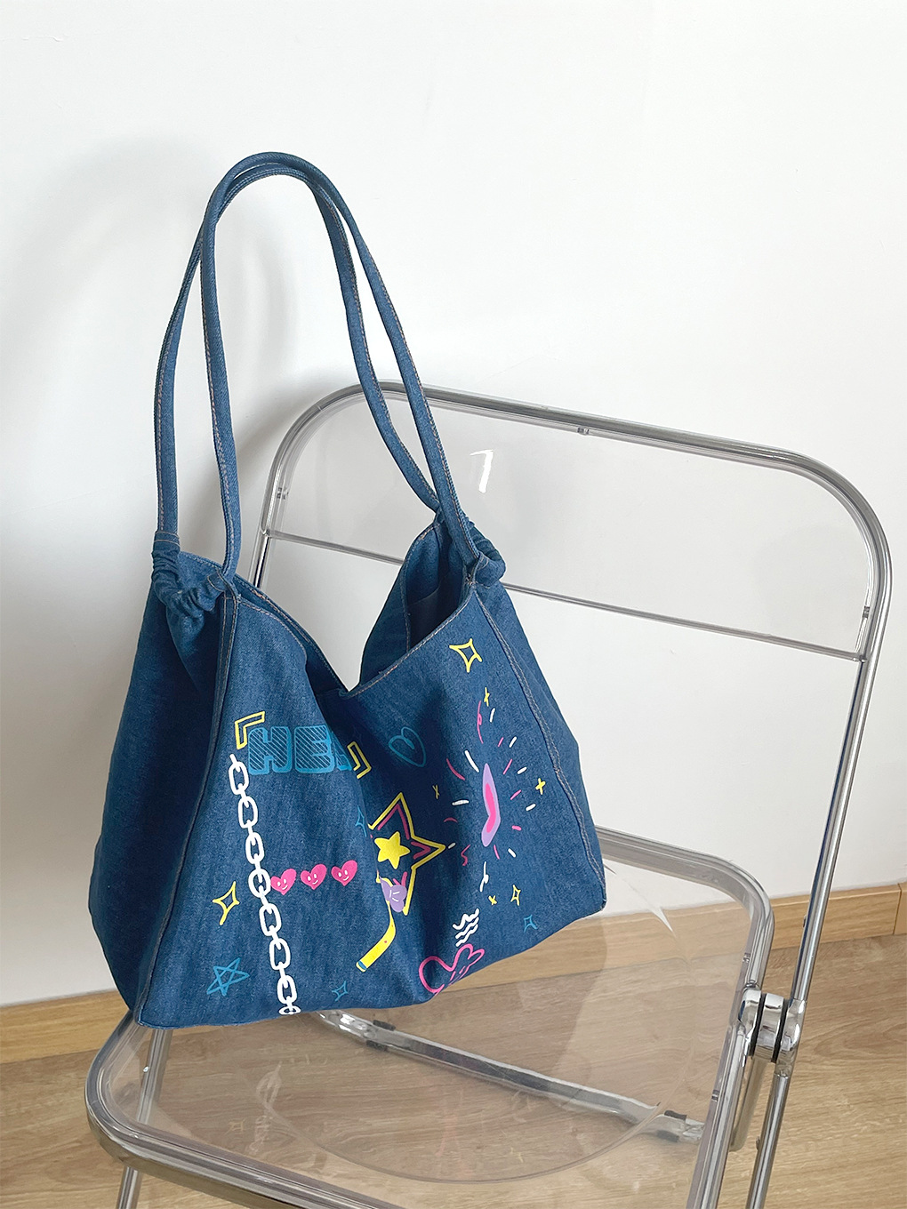 涂鸦牛仔托特包-深蓝