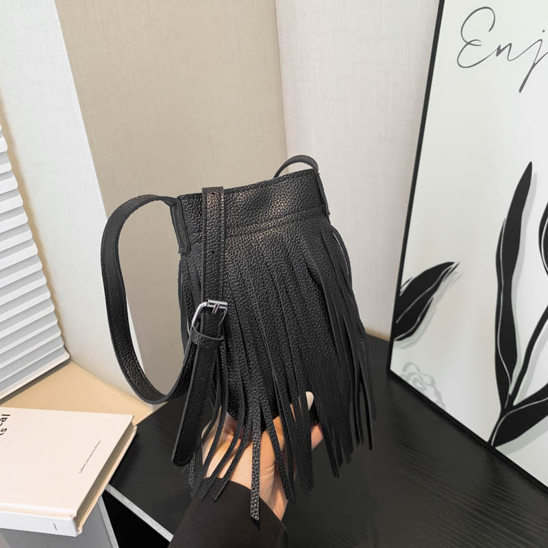 新款散步斜挎流苏手机包夏季纯色竖款轻便时尚百搭单肩手机袋