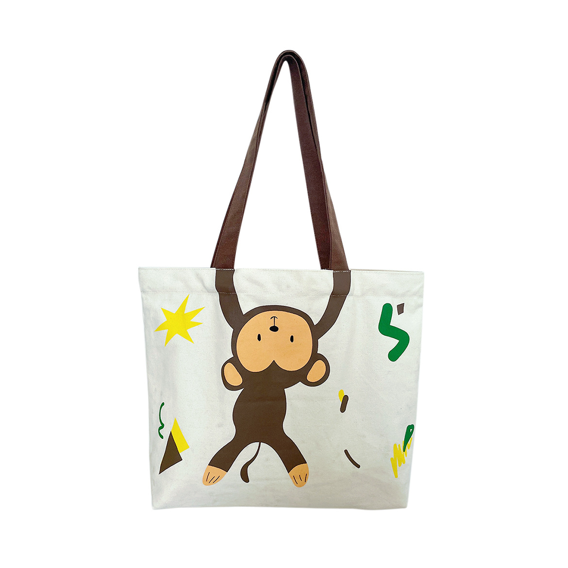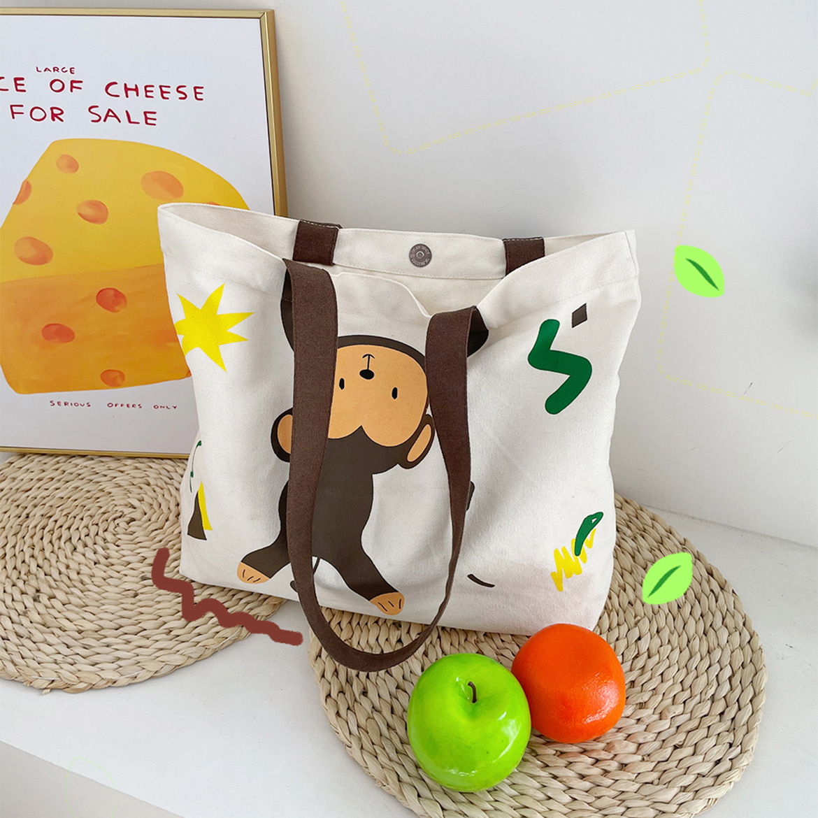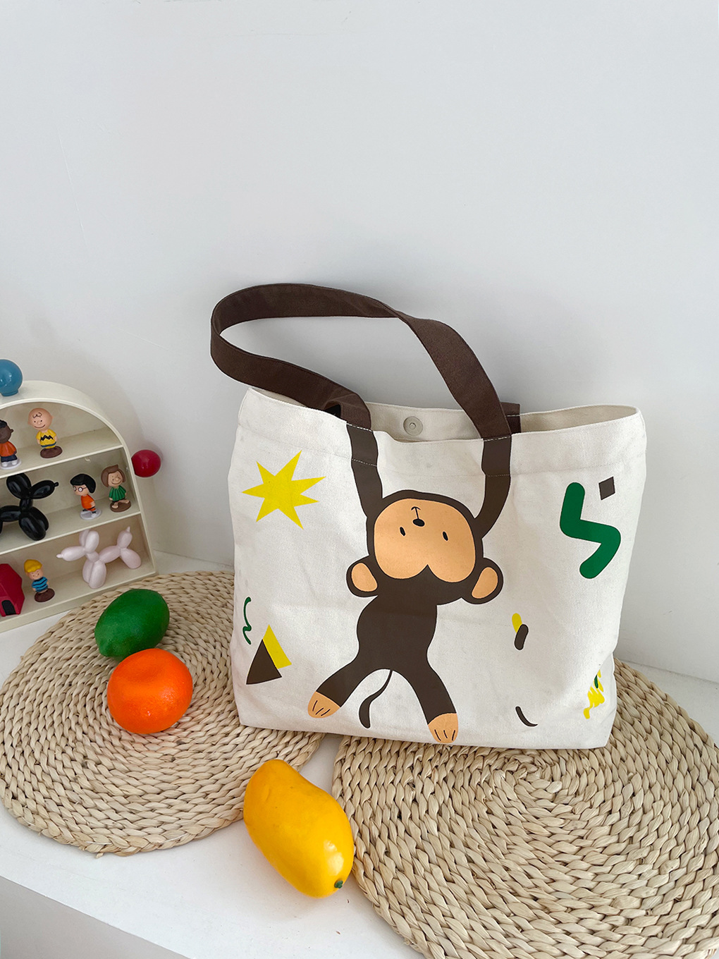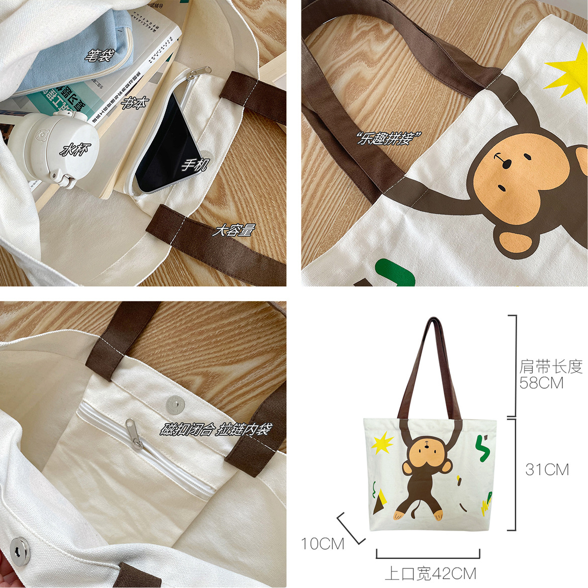 卡通印花帆布包可爱猴子单肩包拼接撞色帆布袋学生上课书包通勤包