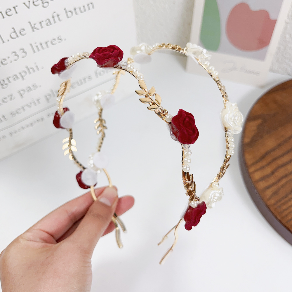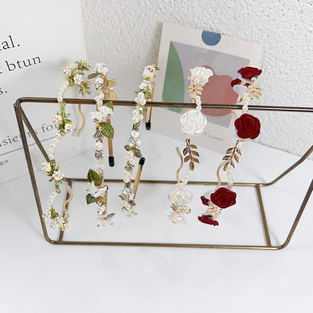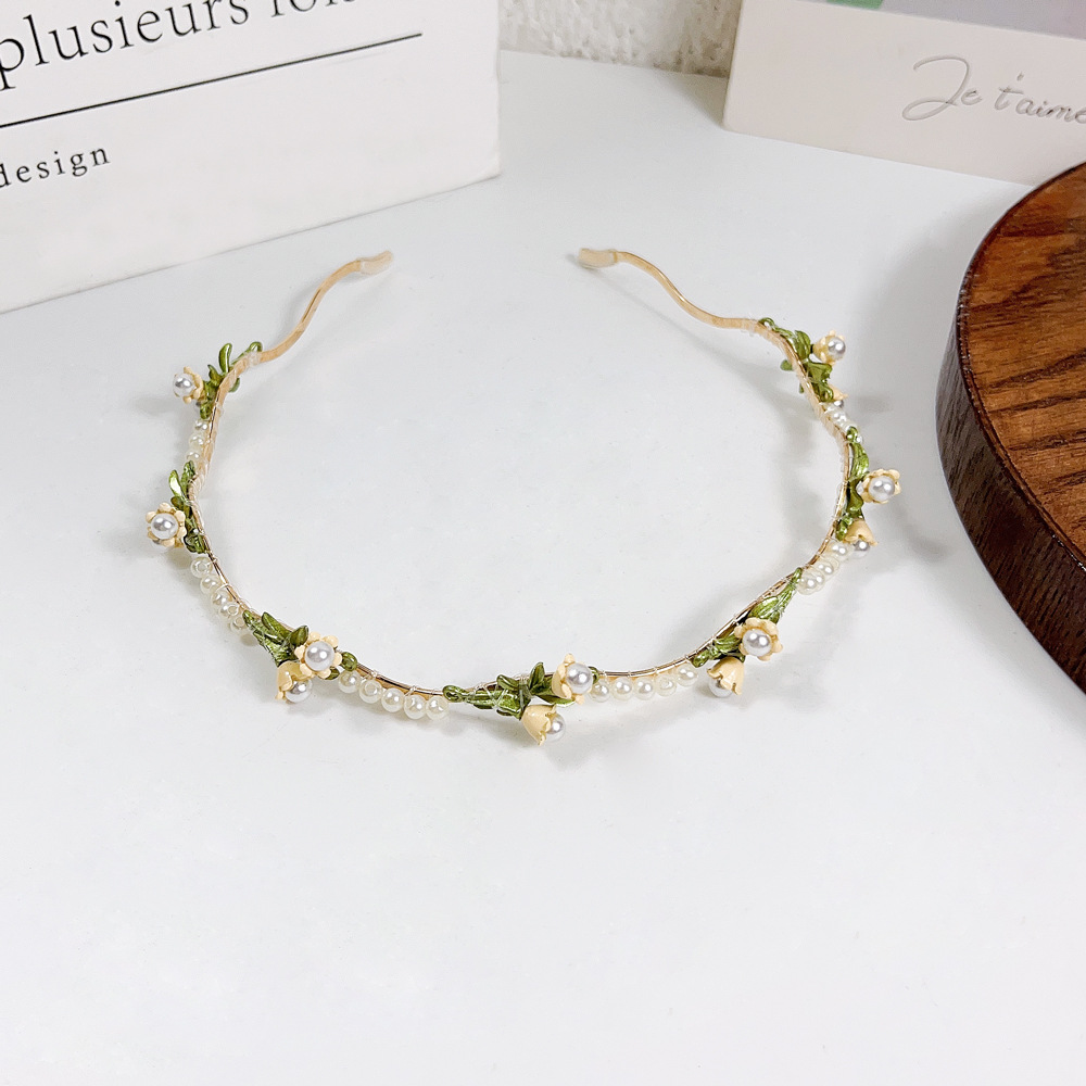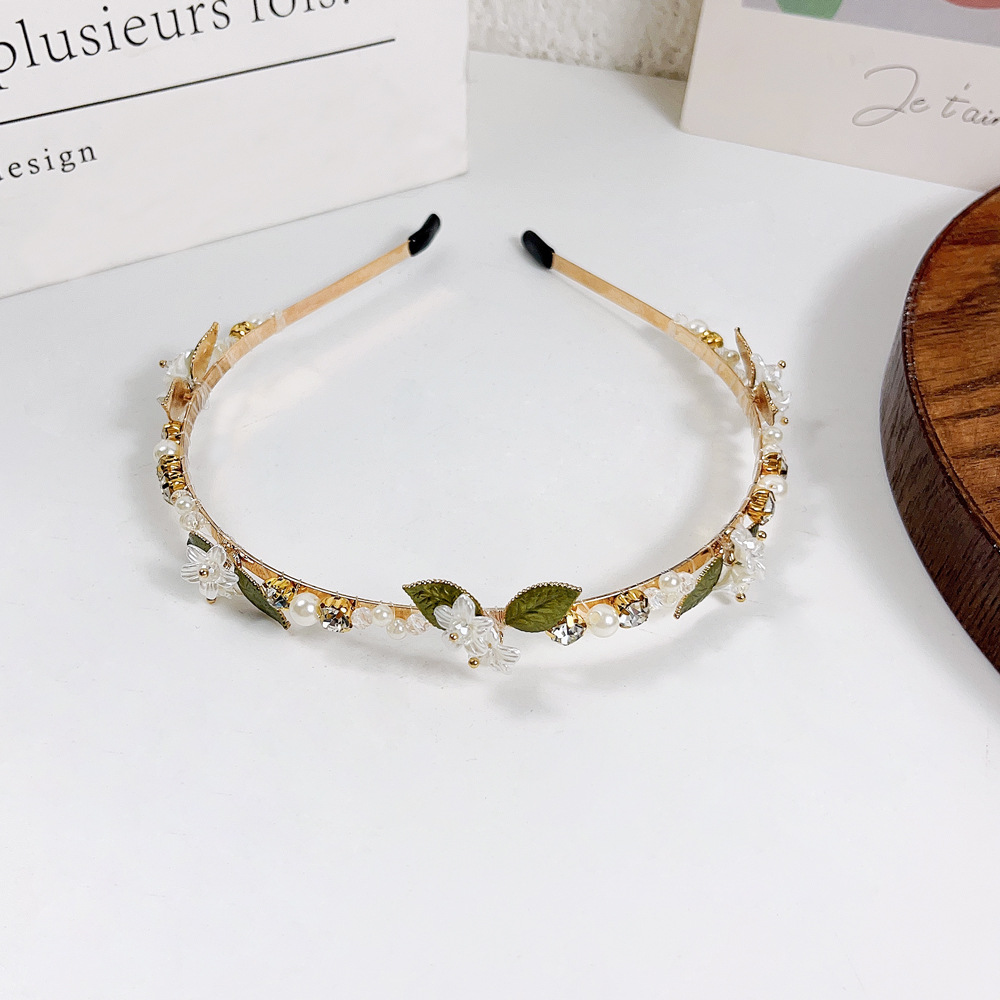 珍珠水晶花朵树叶发箍小清新气质时尚个性头箍复古小众设计感发饰