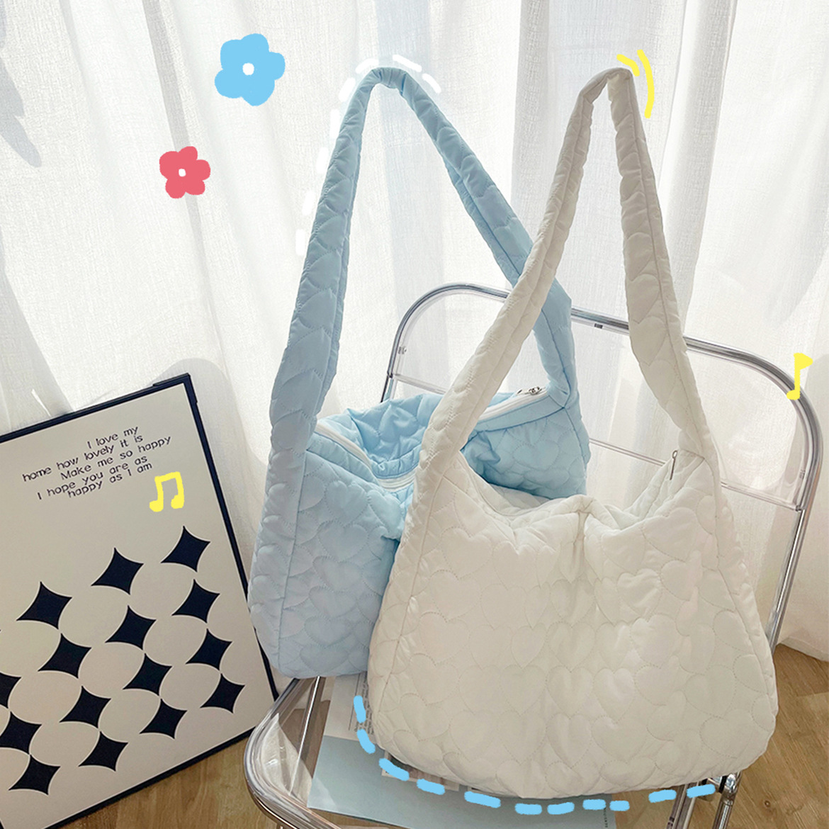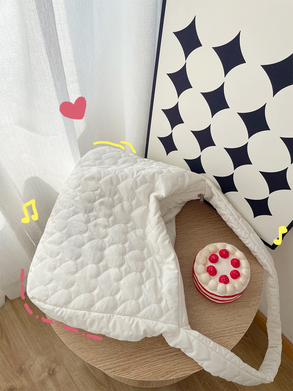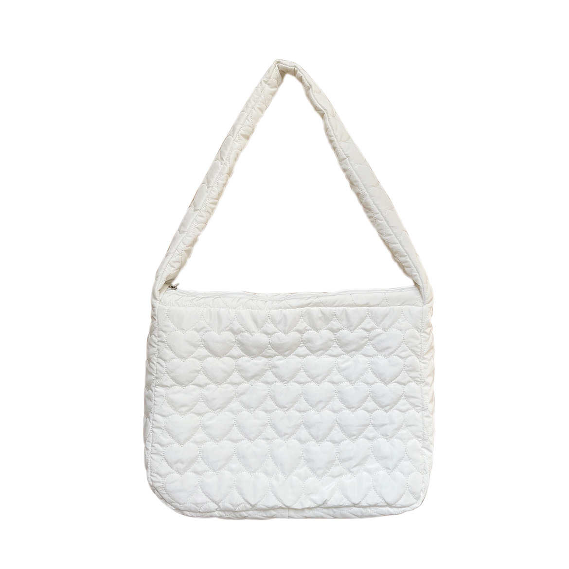 冬款爱心绗缝饺子包大容量单肩斜挎包充棉云朵包
