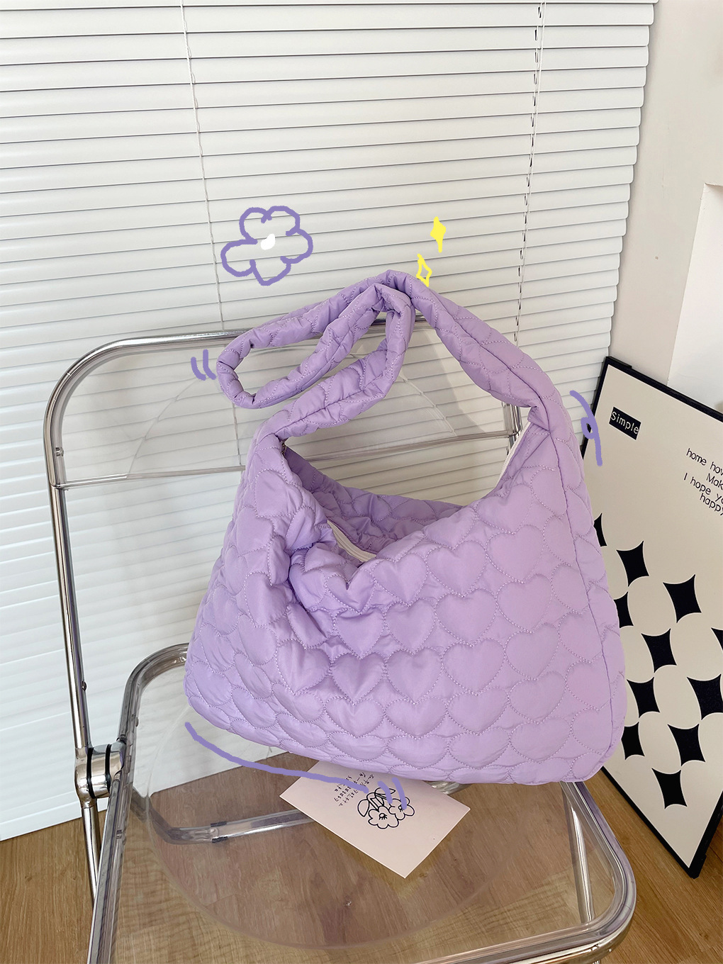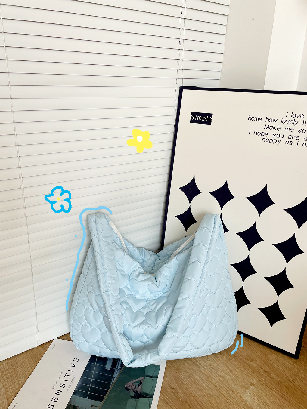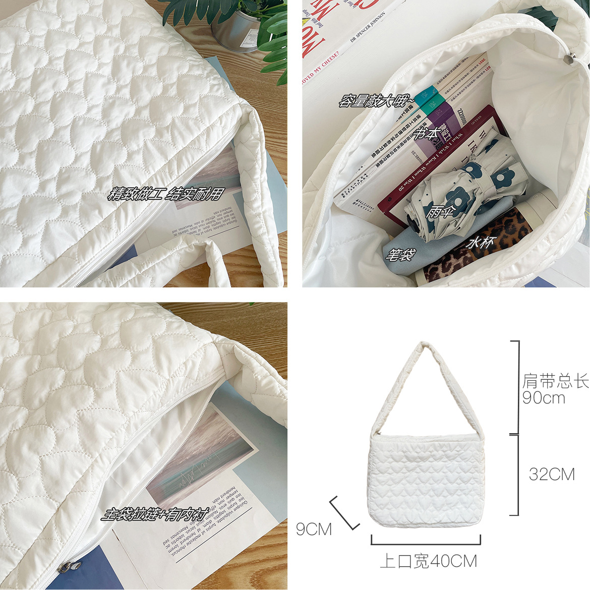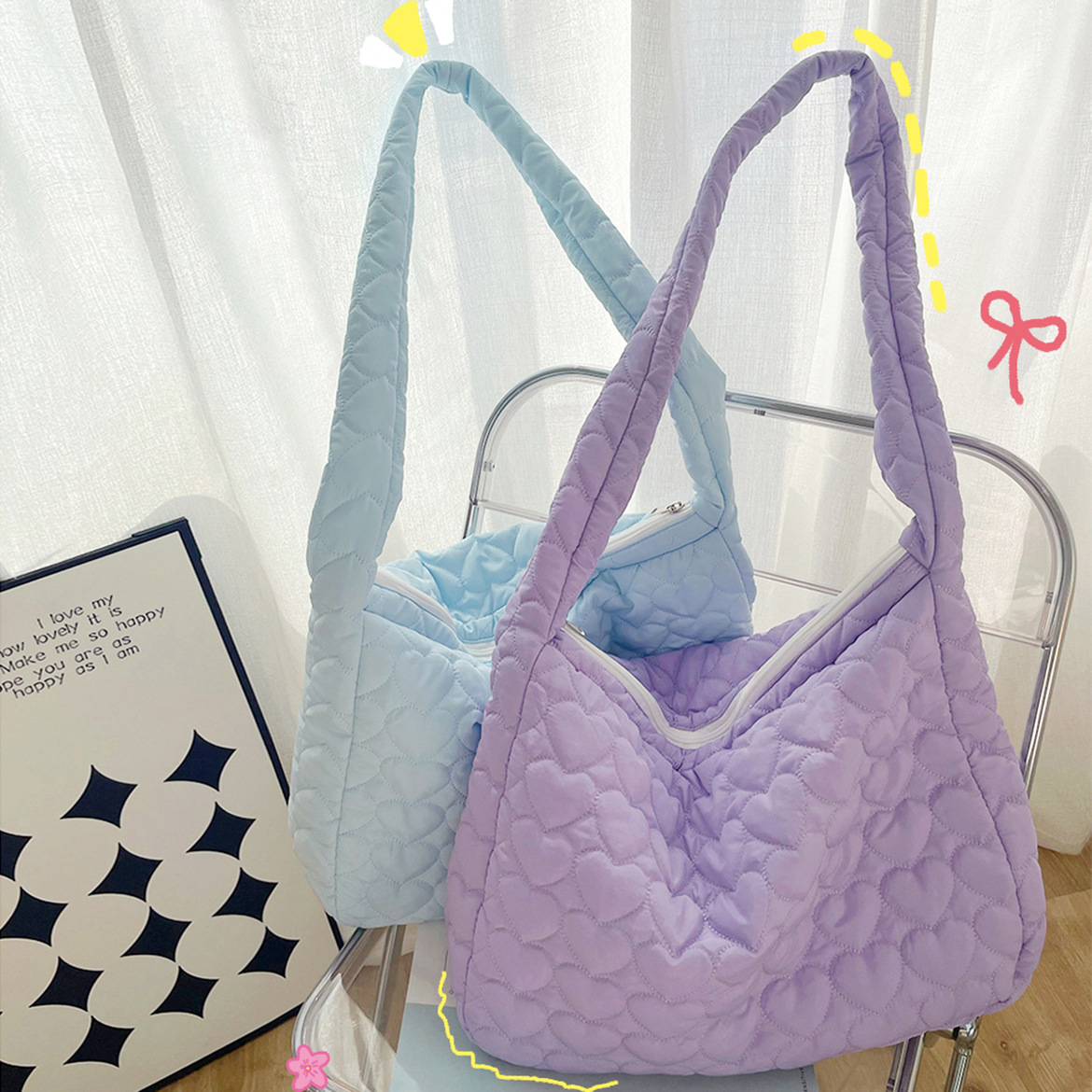 冬款爱心绗缝饺子包大容量单肩斜挎包充棉云朵包