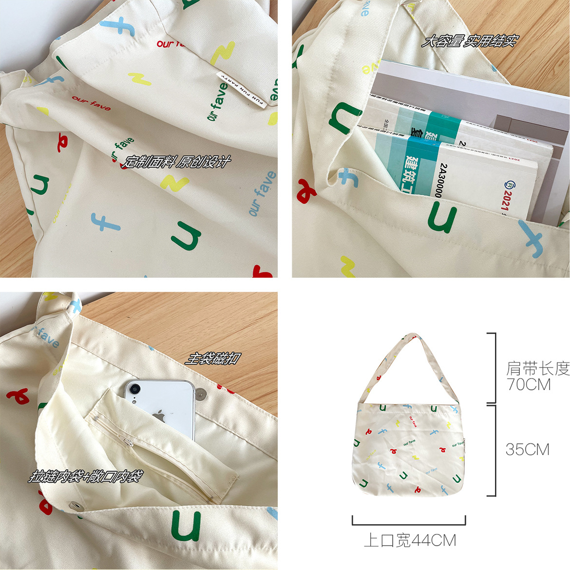 新款休闲百搭布袋清新ins韩版单肩斜挎包大容量托特包学生包