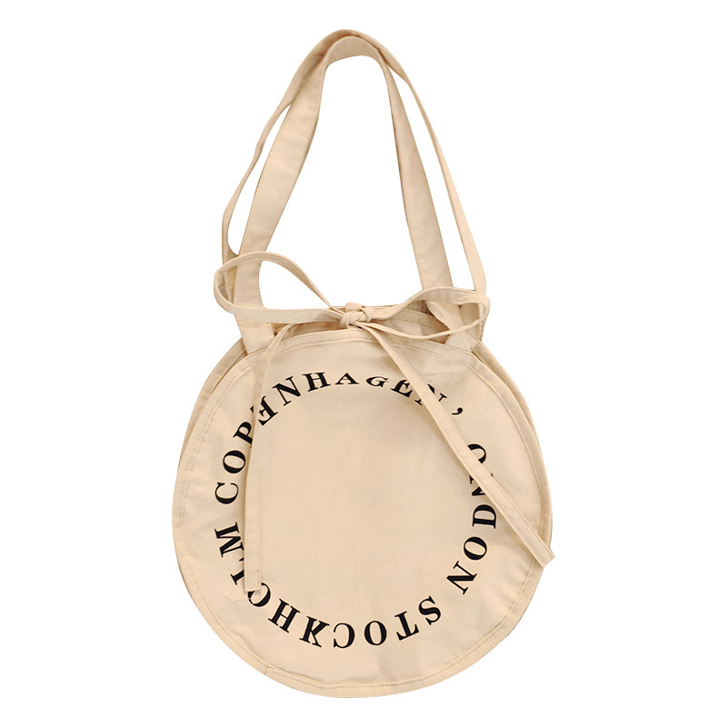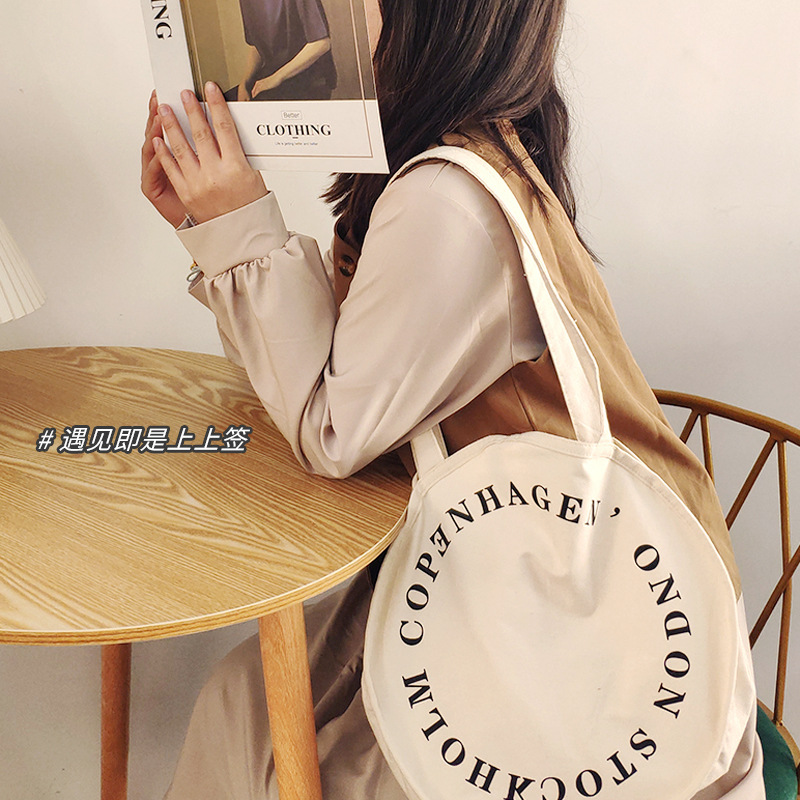 法国小众ins圆形手拎单肩帆布包女复古文艺布袋潮