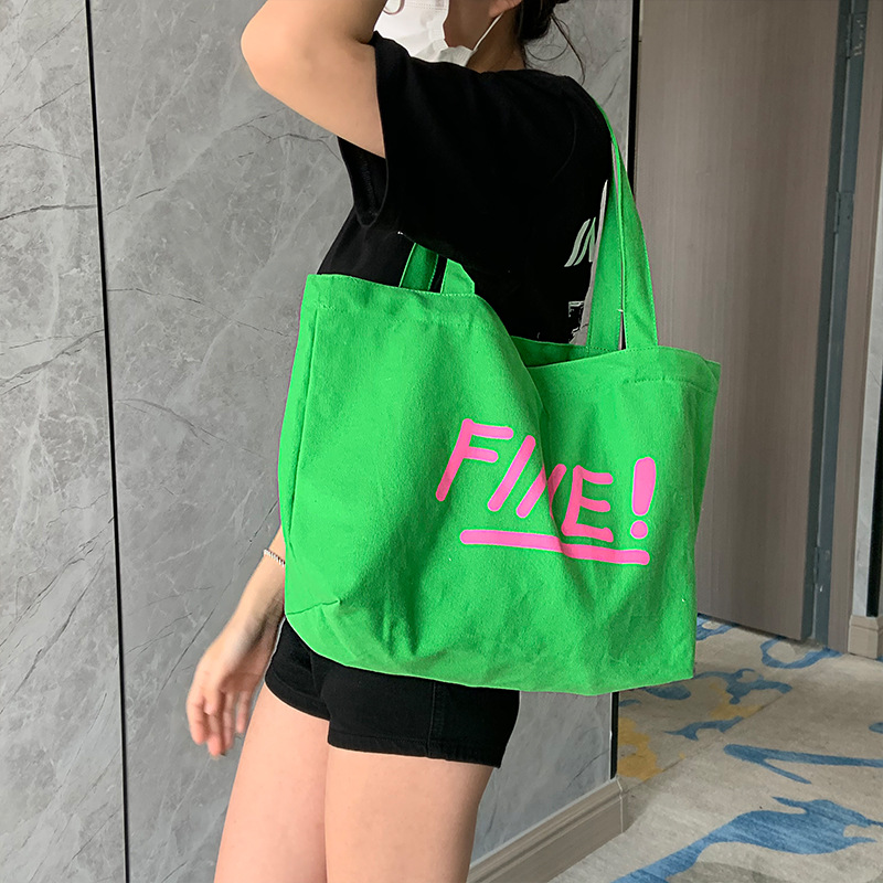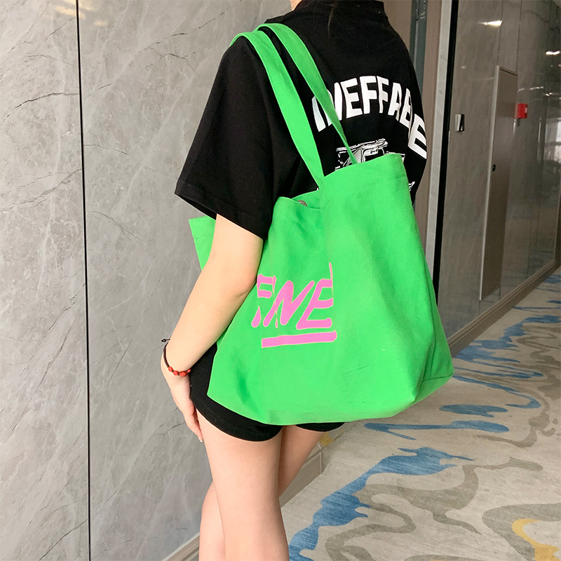 文艺清新单肩帆布包新款简约字母包大容量ins帆布袋托特女包