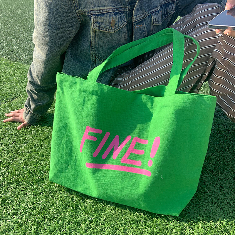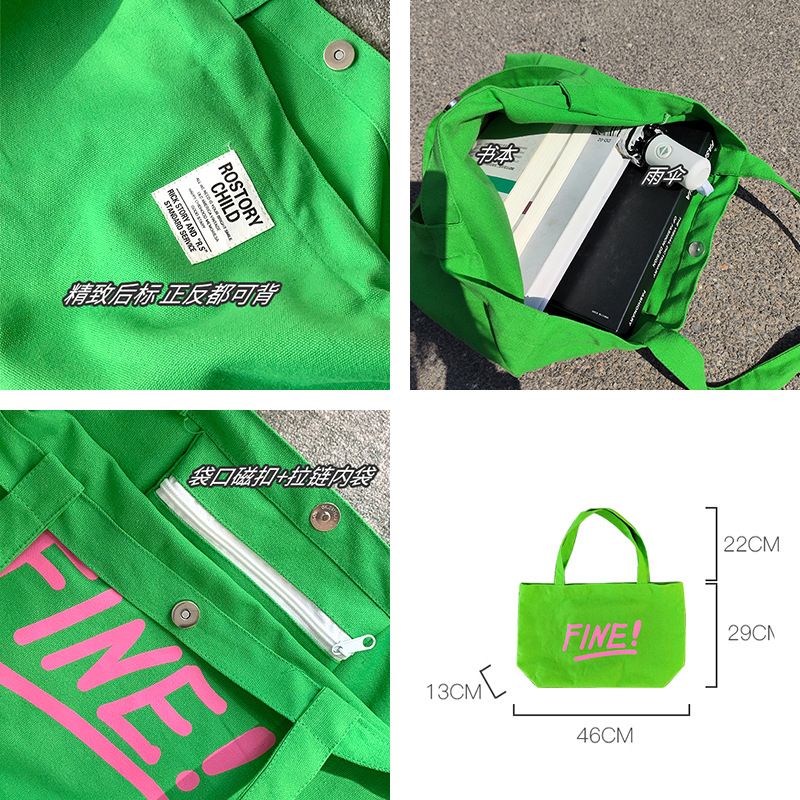 原创夏日活力绿色单肩包大容量帆布袋大学生上课包