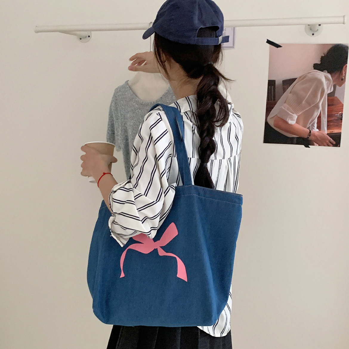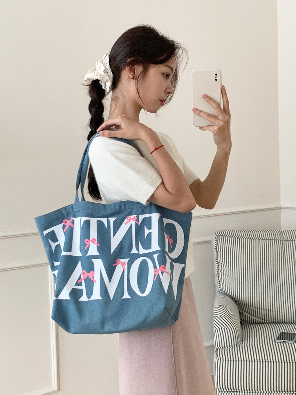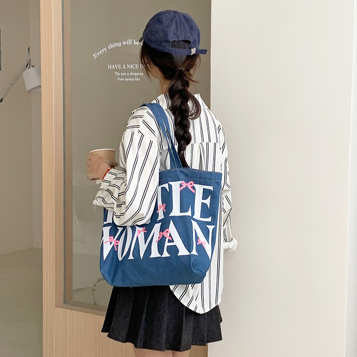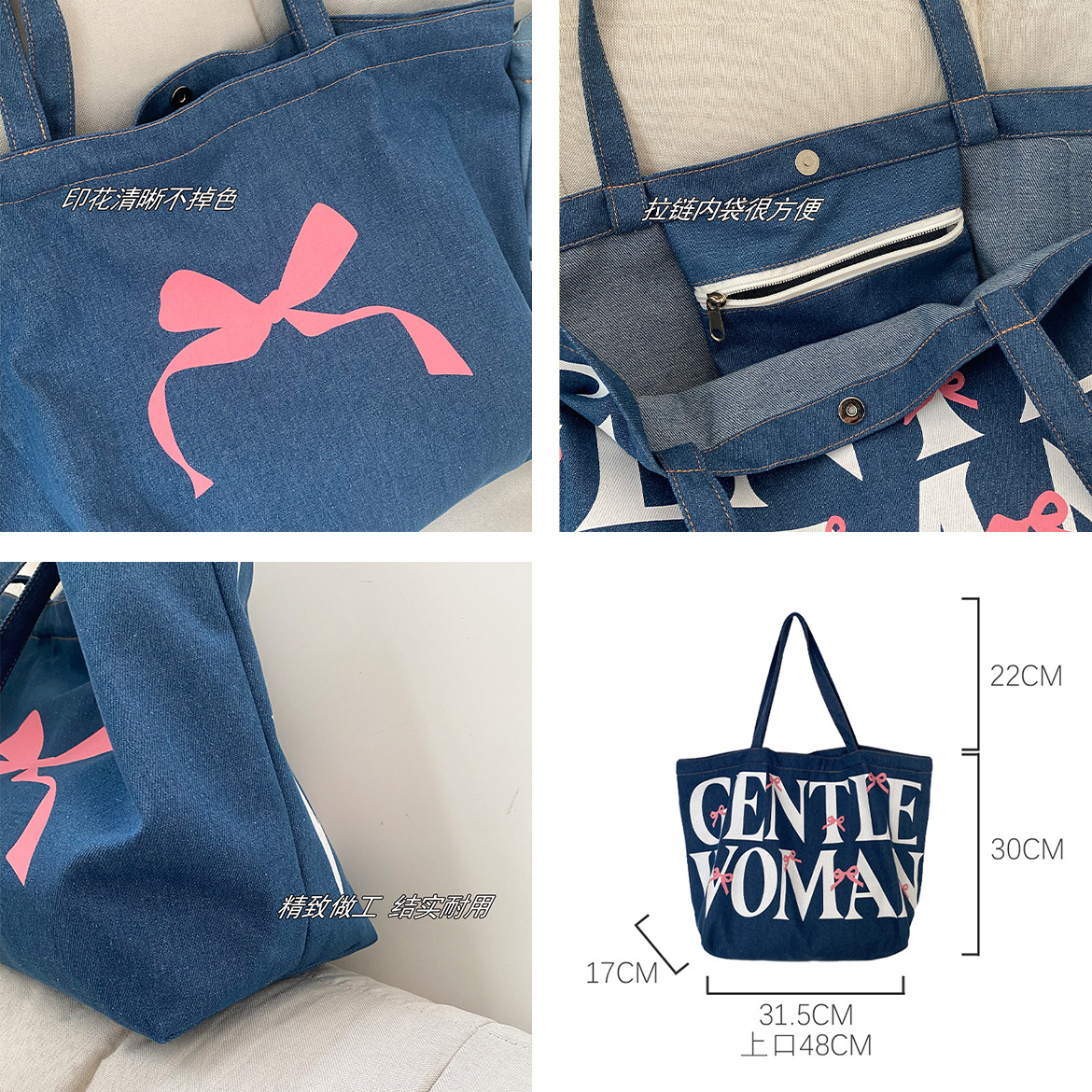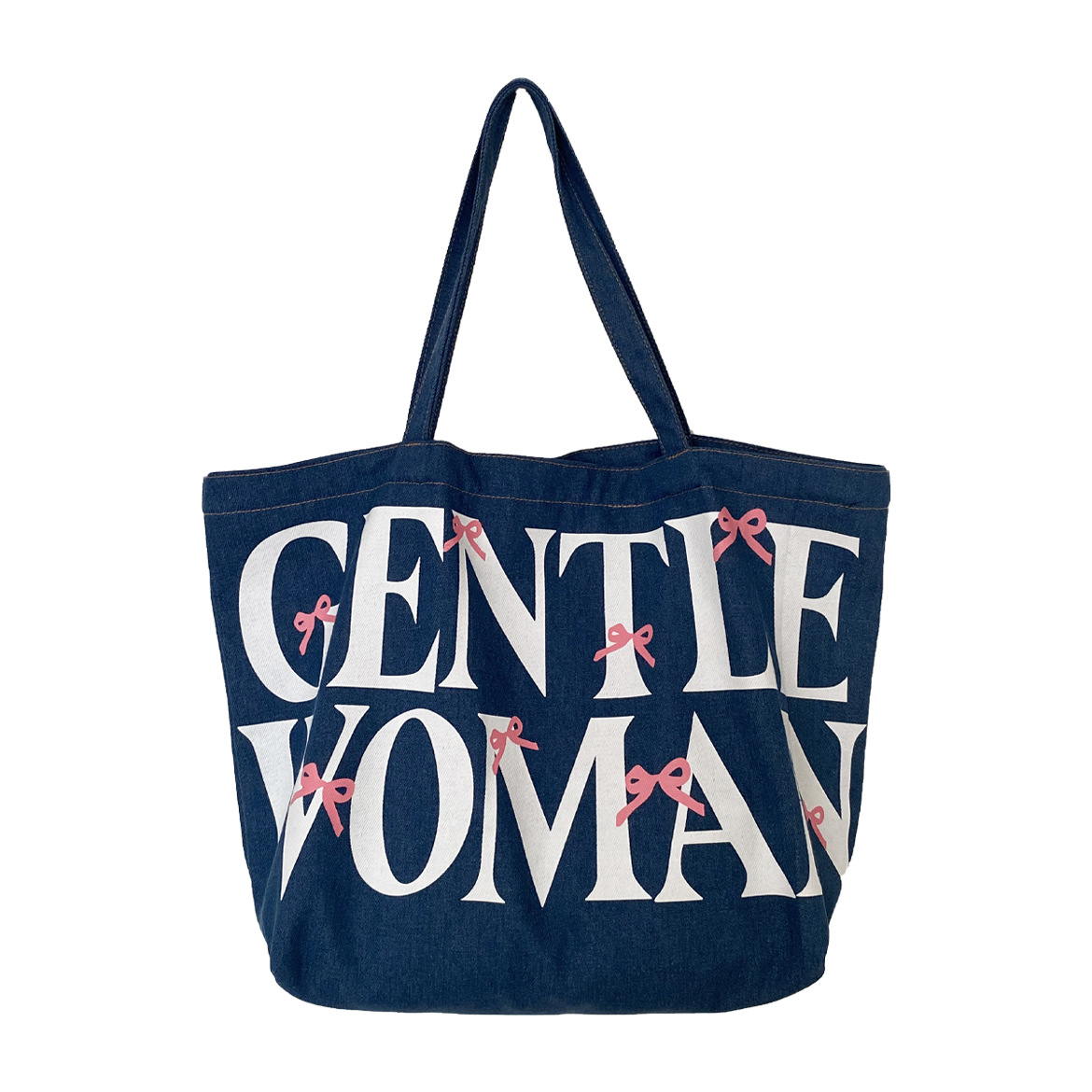Gentle Woman大字母印花托特包牛仔单肩帆布包大容量通勤包潮