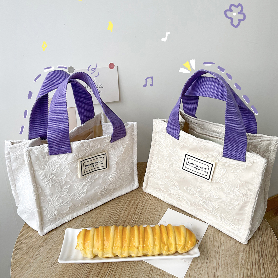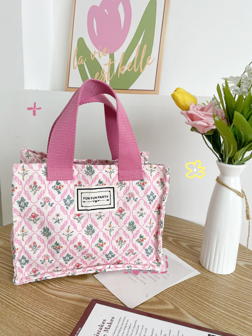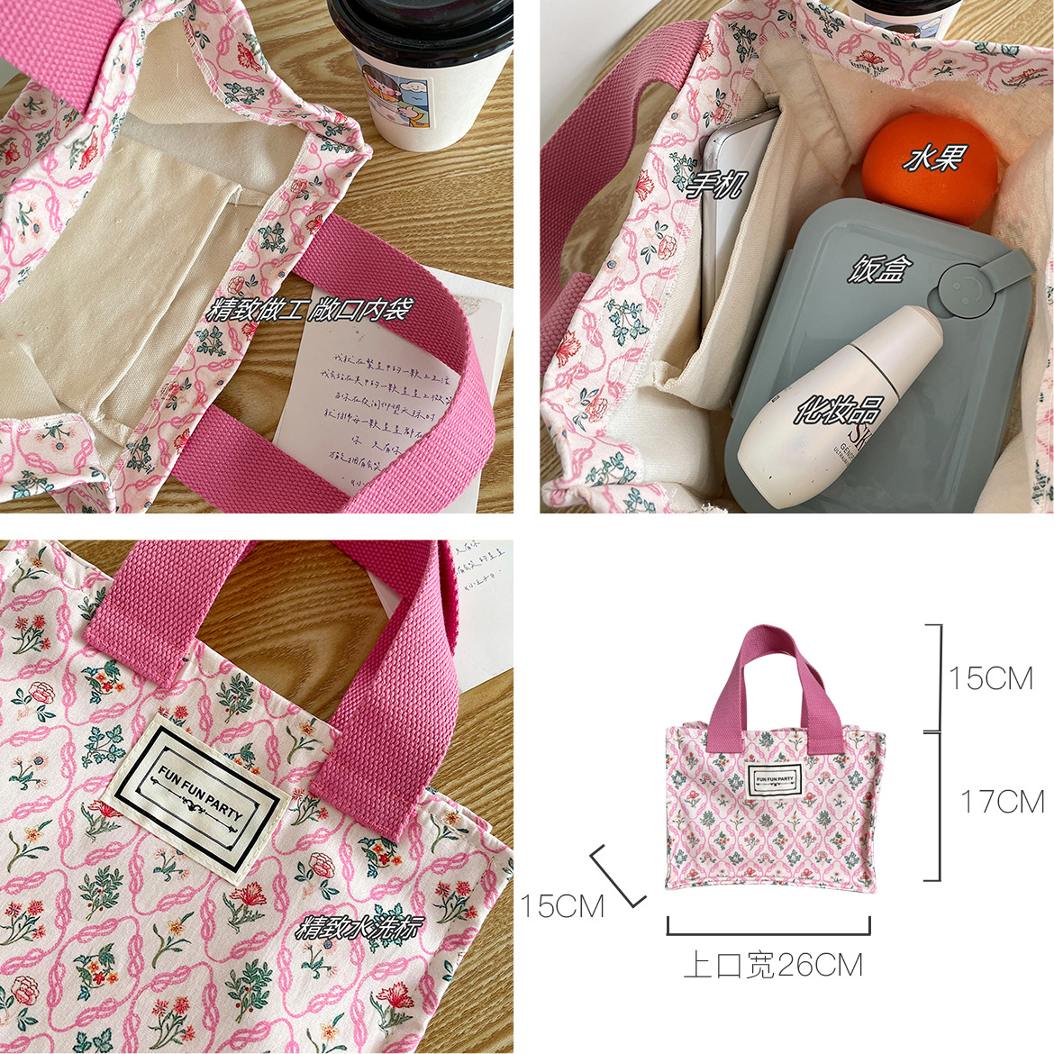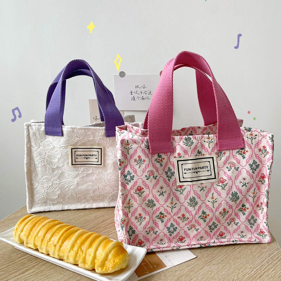 野餐碎花饭盒袋百搭手拎小方包蕾丝收纳包妈咪包
