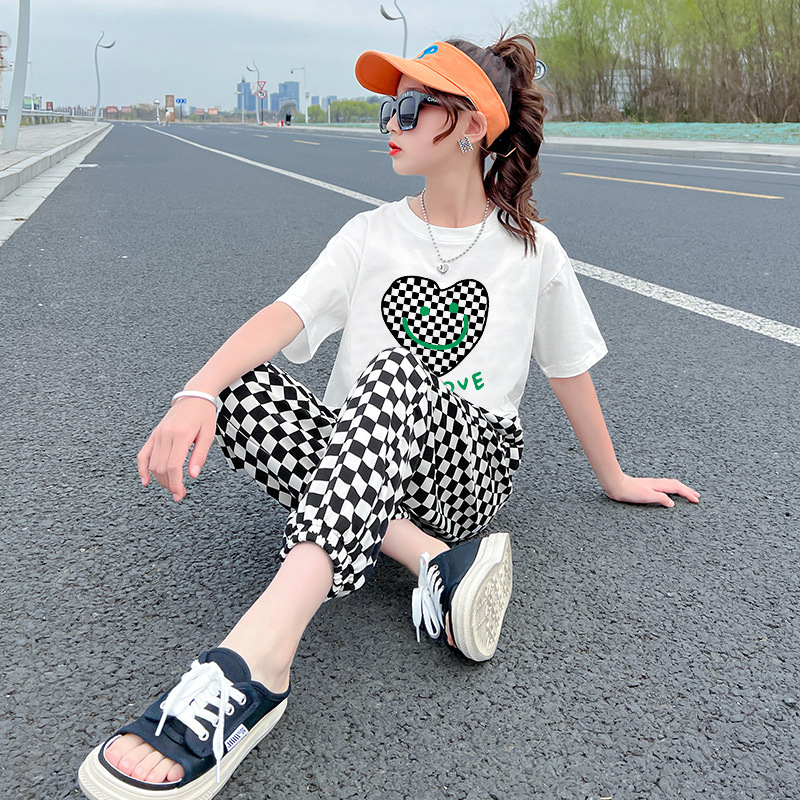 童装女童运动套装夏季新款洋气儿童夏装短袖小女孩衣服中大童冰棉