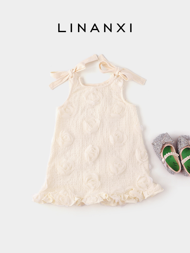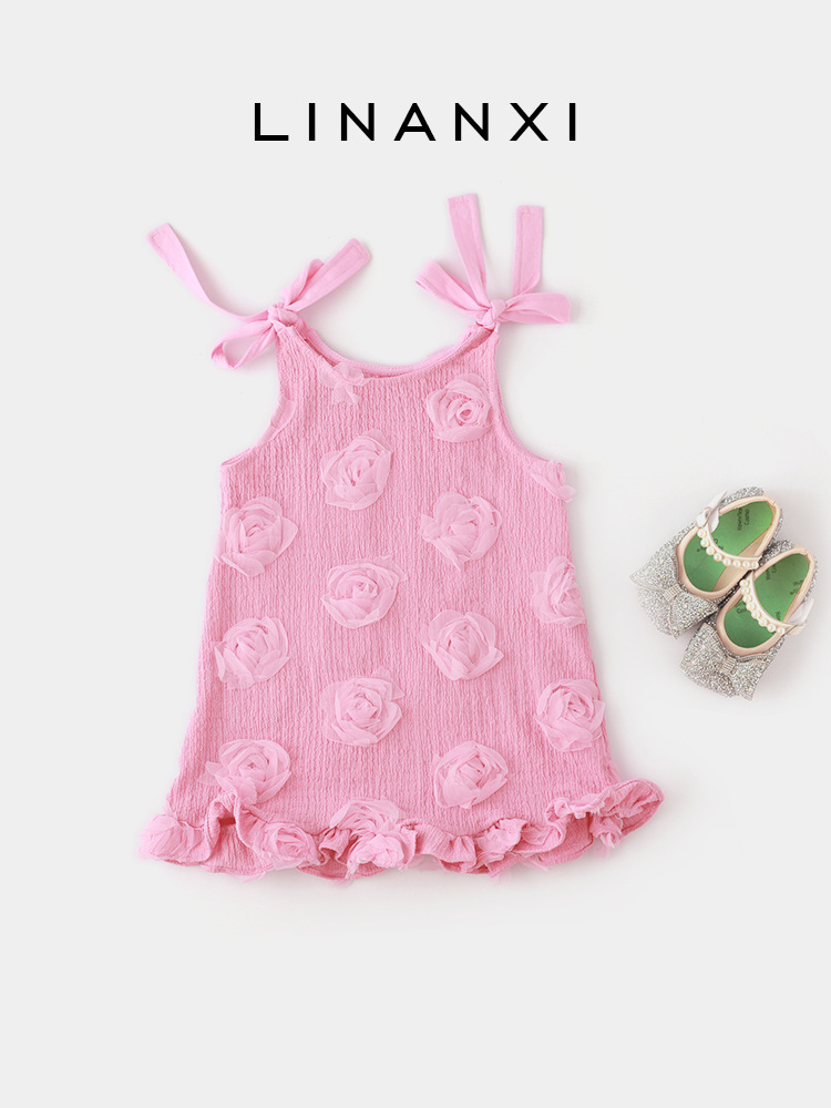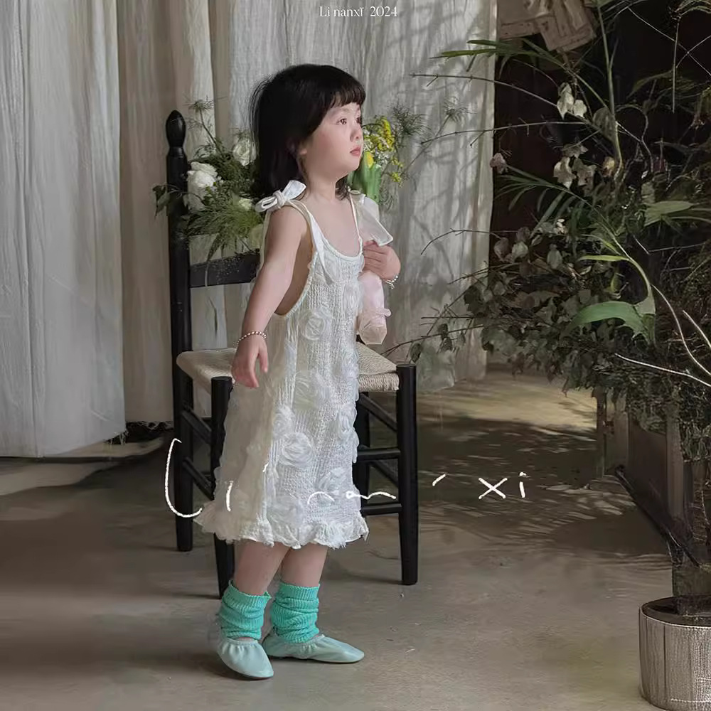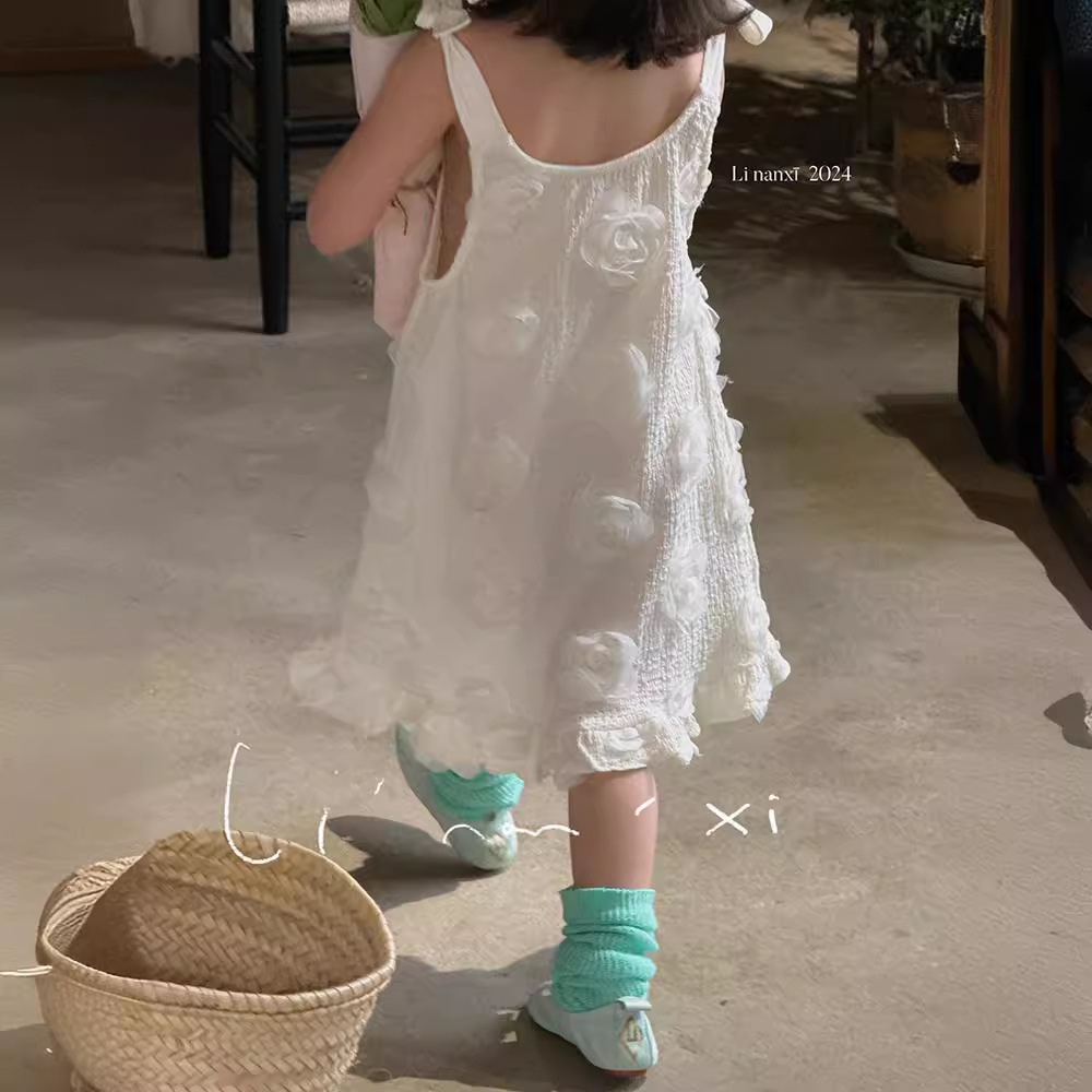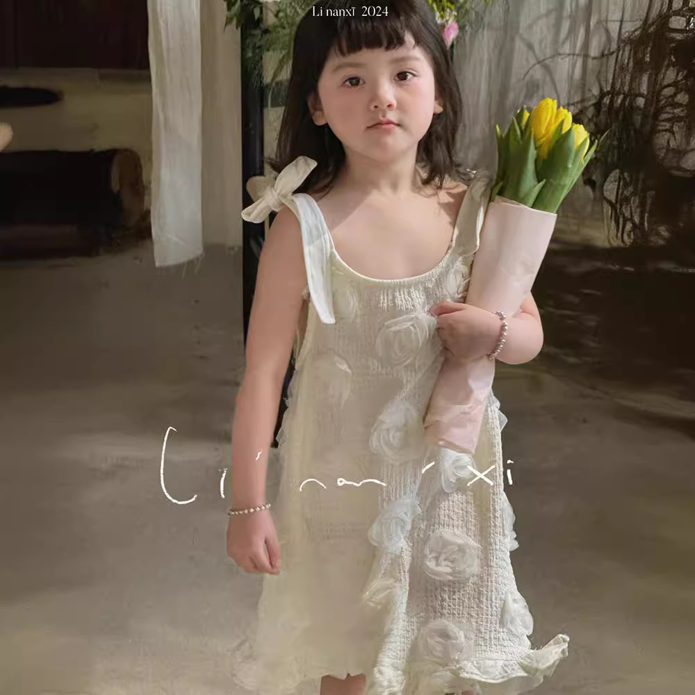 24夏季新款女童连衣裙3-8岁公主娃娃裙立体花朵A字裙礼服裙