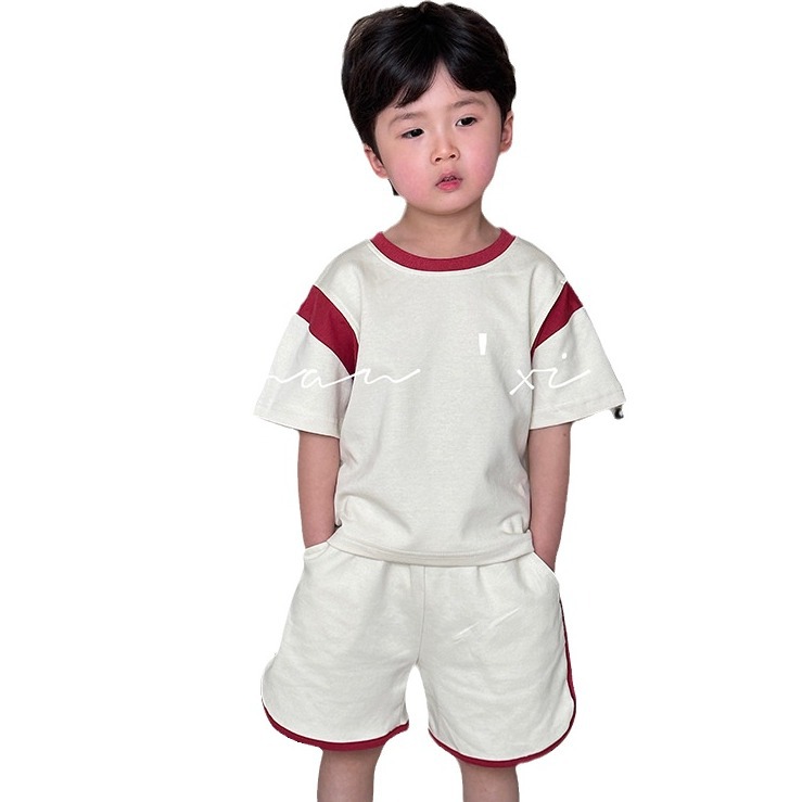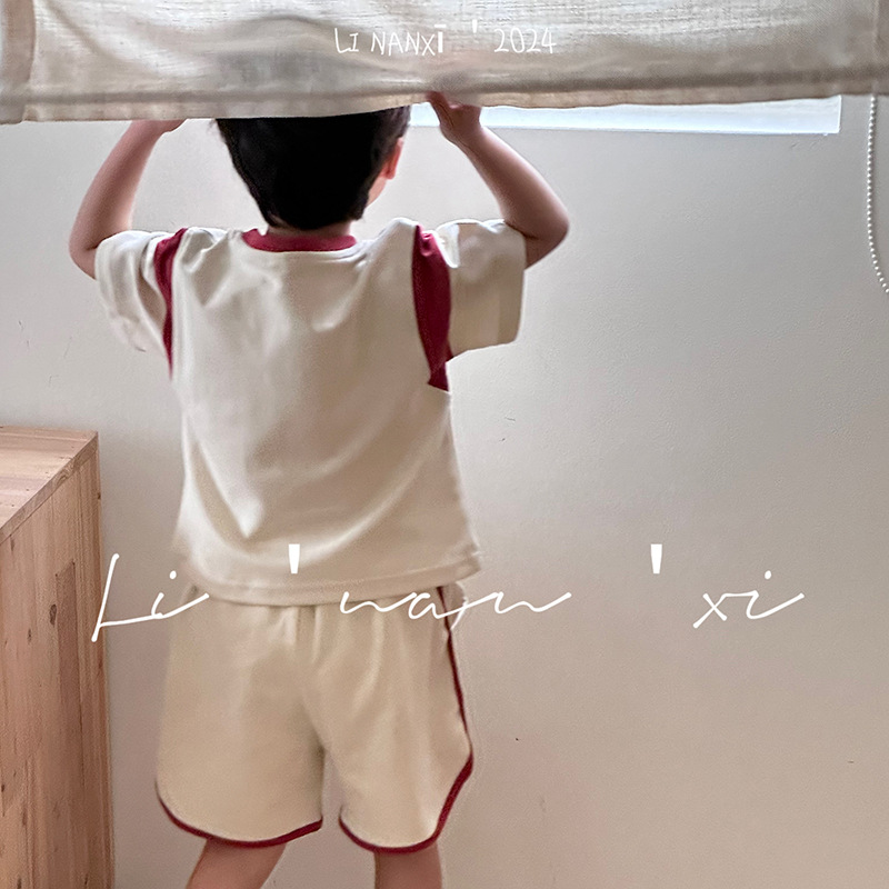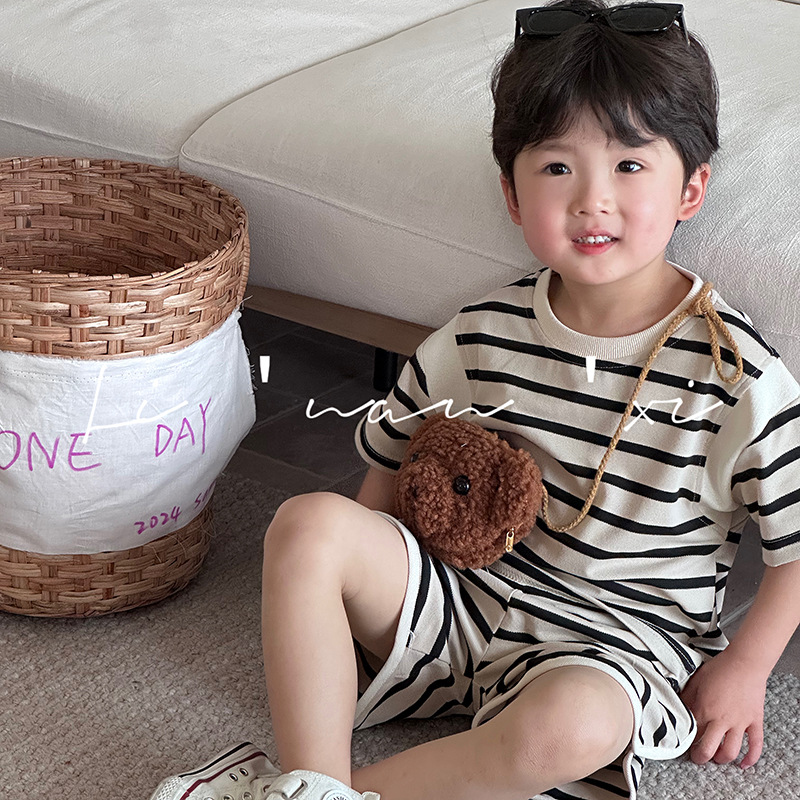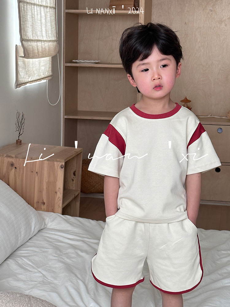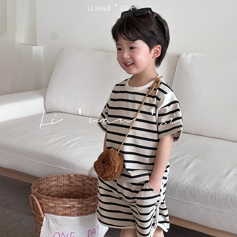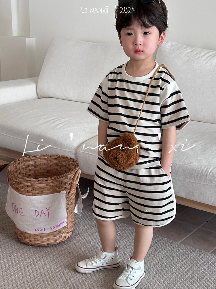 80077男女童套装24夏新款宝宝条纹拼色百搭时尚出街必备短袖+短裤