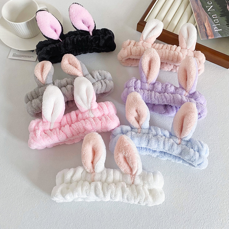 韩国可爱立体兔耳朵束发带女生毛绒卡通洗漱化妆运动发箍头饰